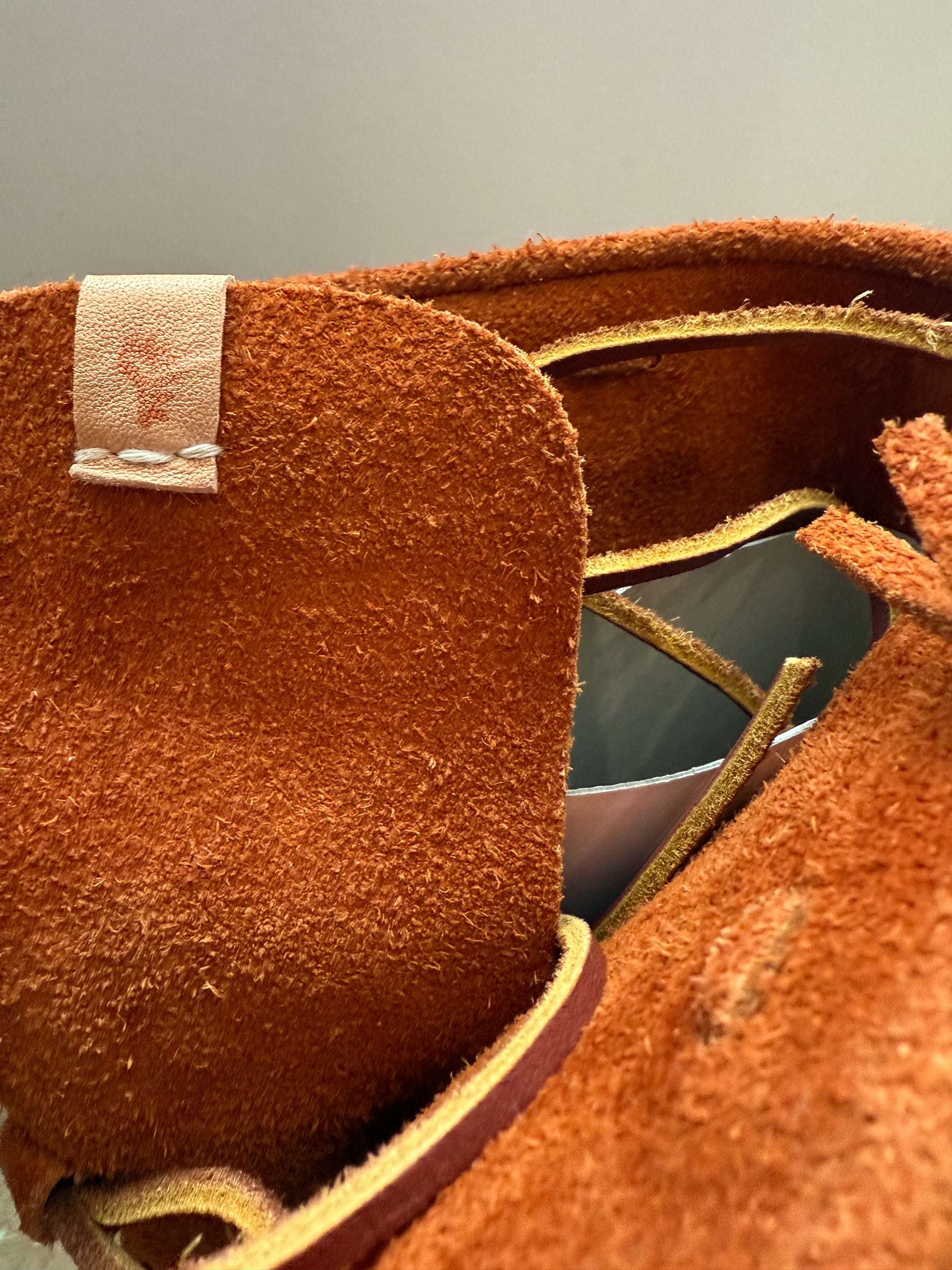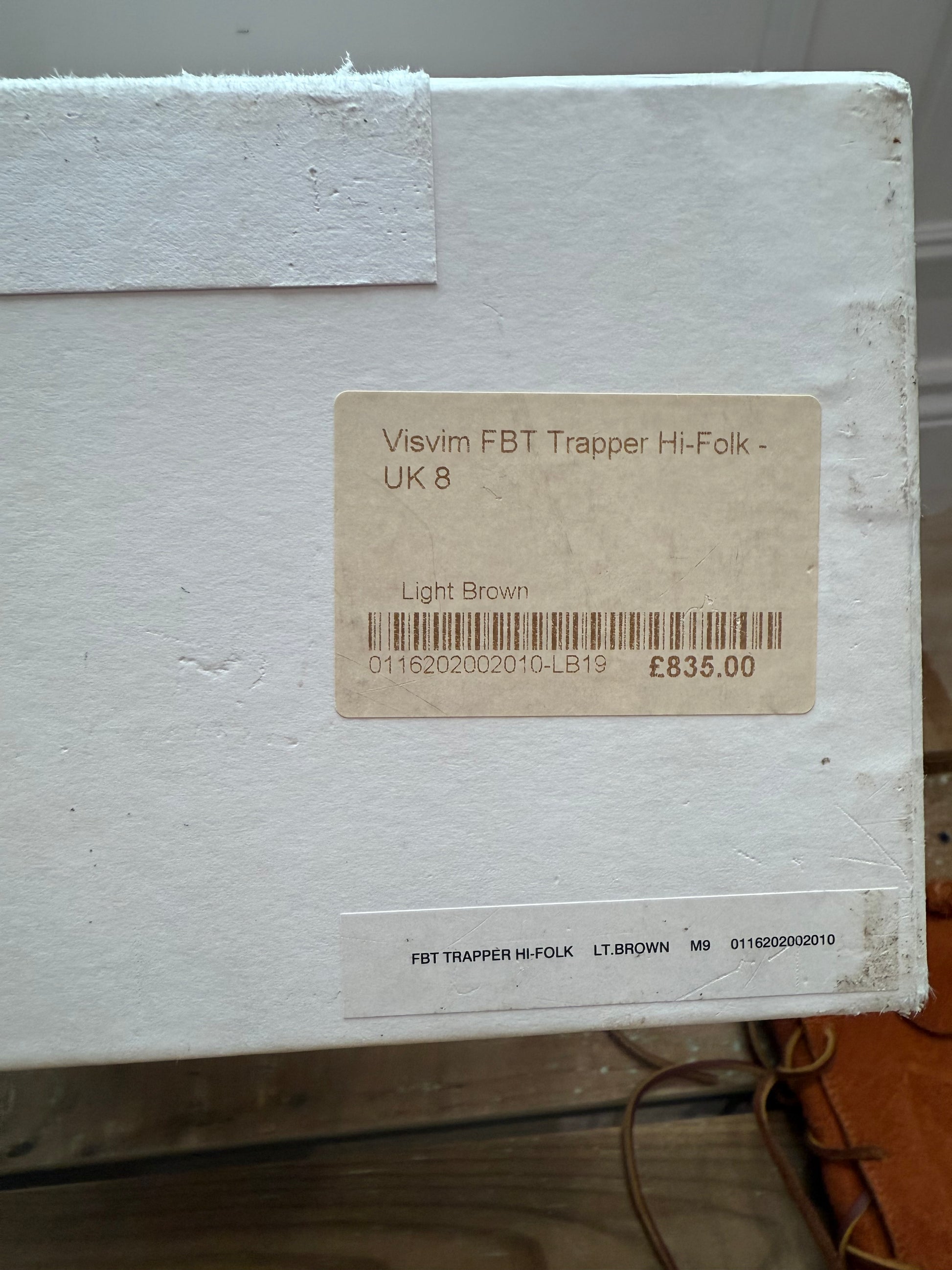 Visvim FBT Trapper Hi-Folk boots in light brown suede. Boxed. UK 8.