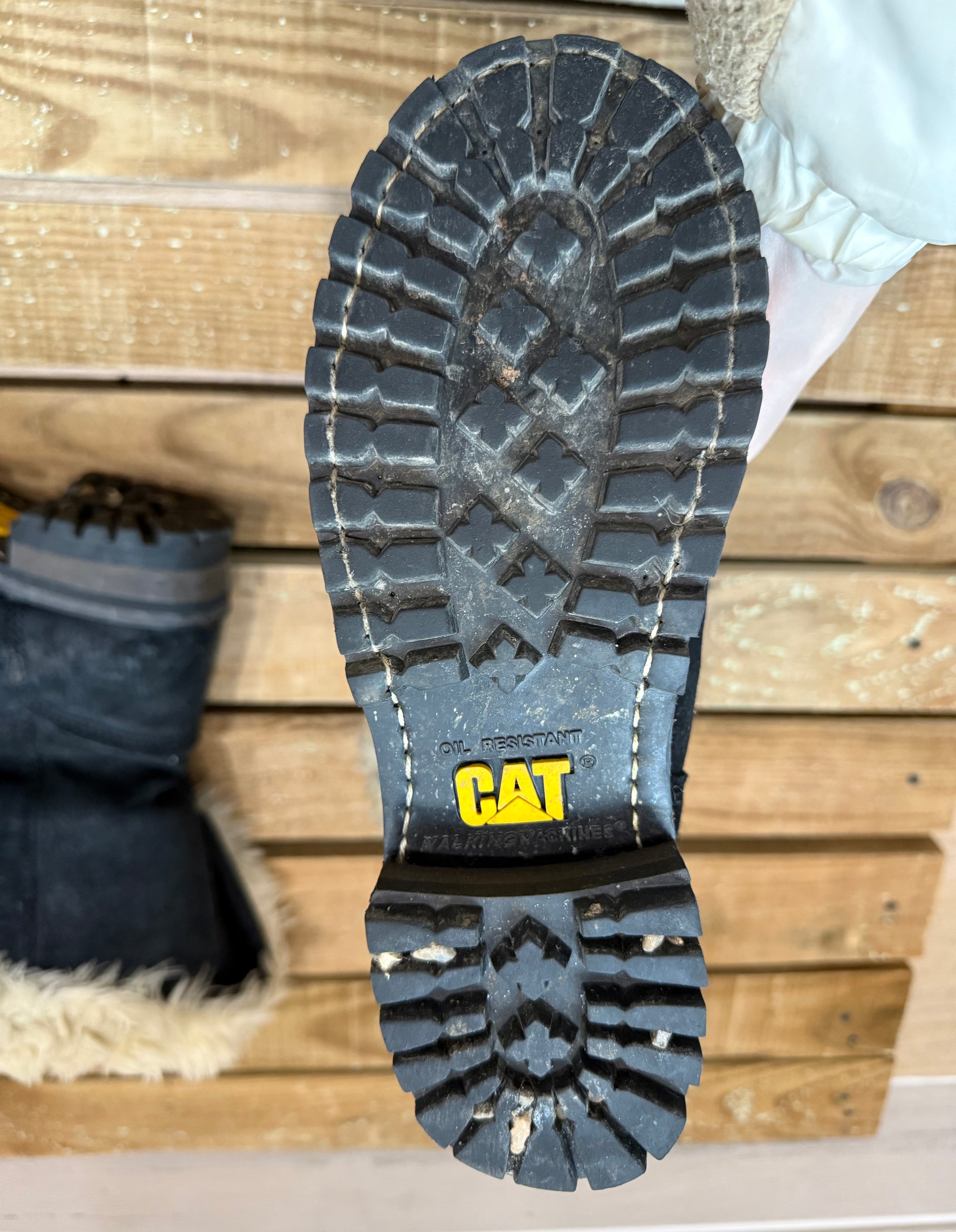 Vintage Y2K CAT Caterpillar Fur lined Mid Calf Leather Buckle Boots Size 5,EU38
