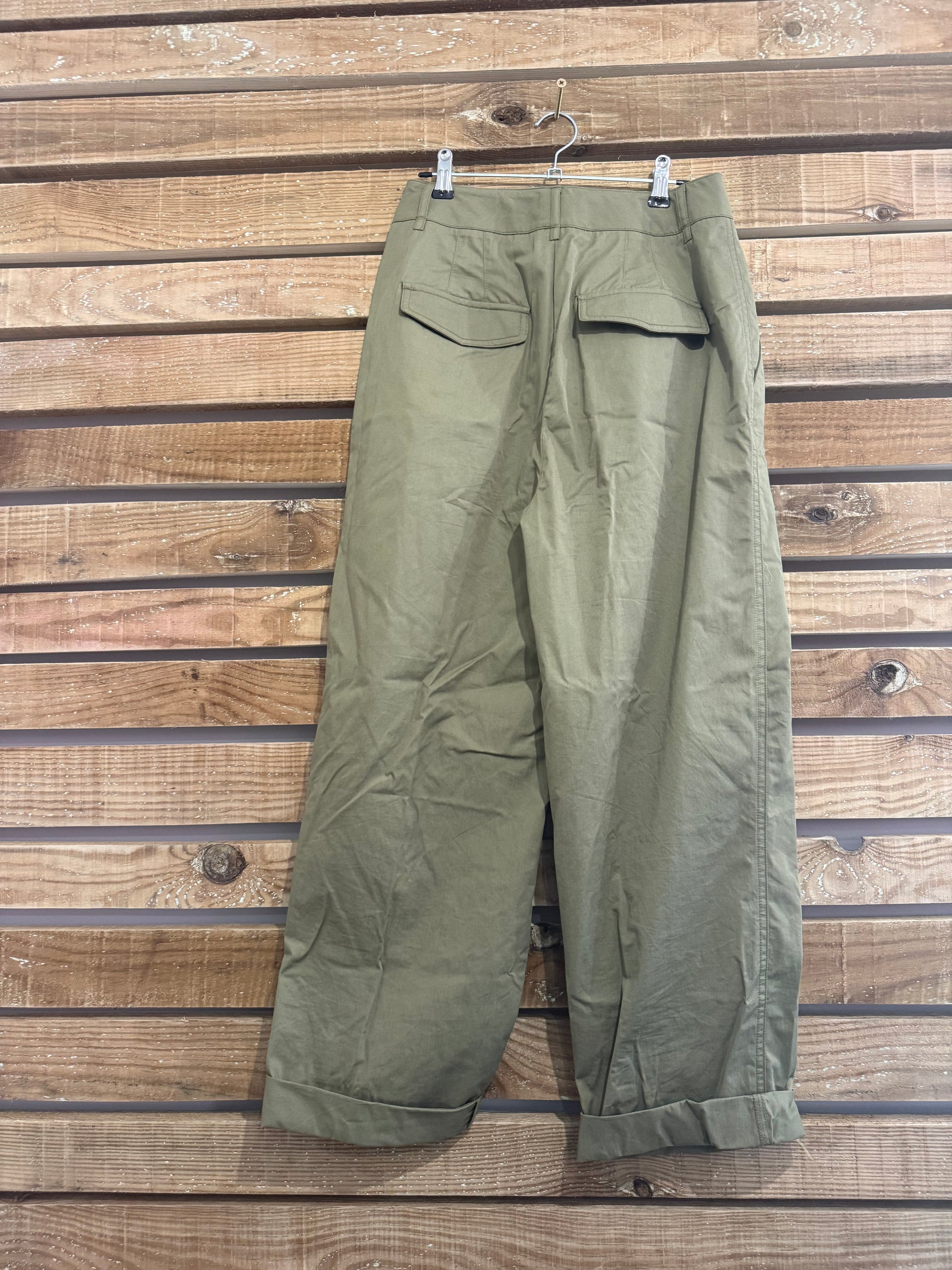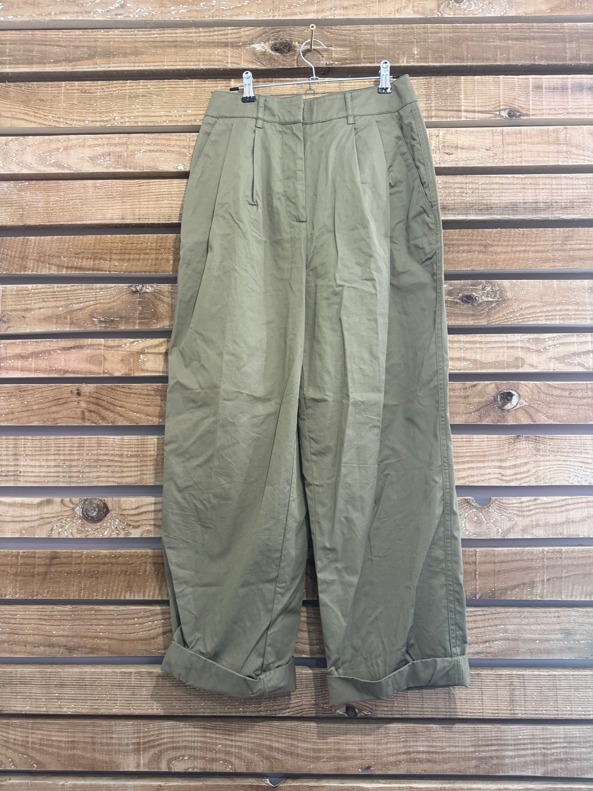 Mint Velvet khaki tapered trousers. Size UK8, 26” waist.