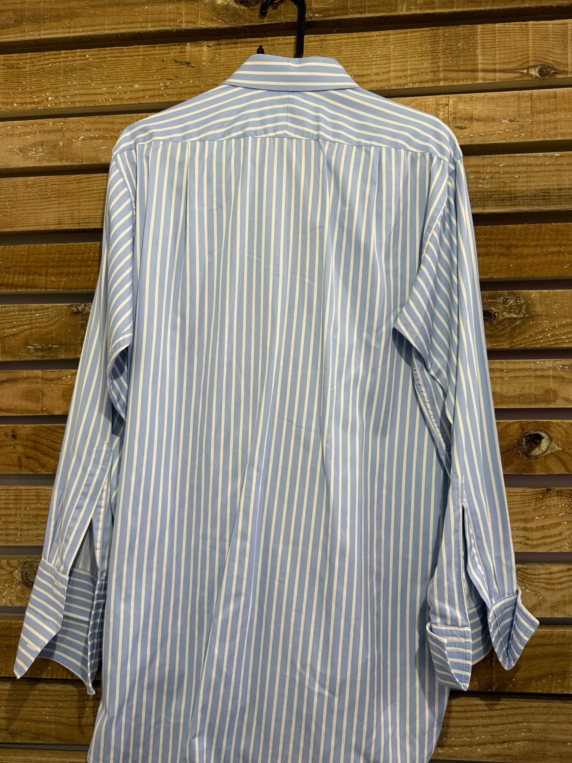 Labelled a Large. Measures a 46” chest, so best fits up to a size Large for a fitted look.