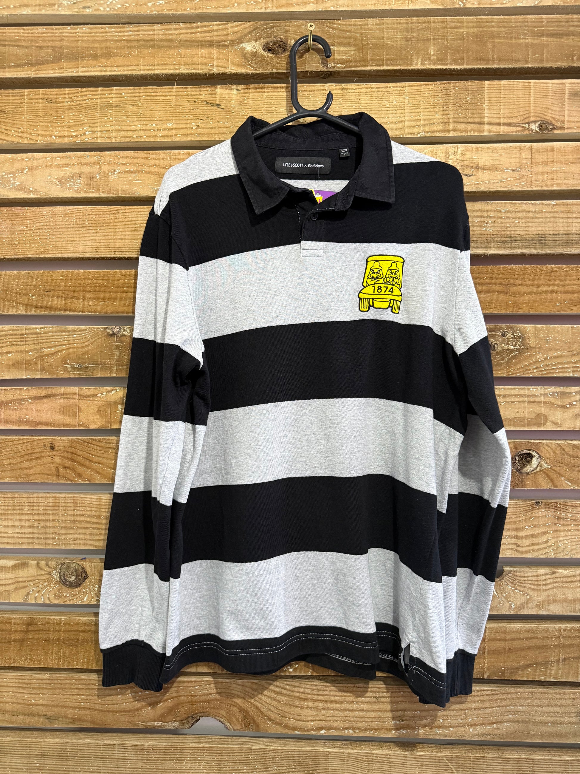 RARE Lyle & Scott x Golfickers Rugby Striped embroidered Shirt. Size Large.