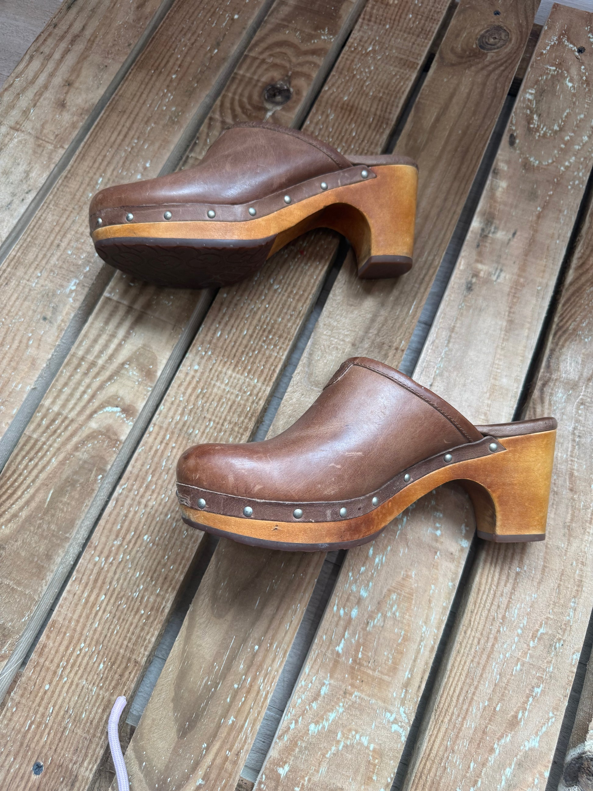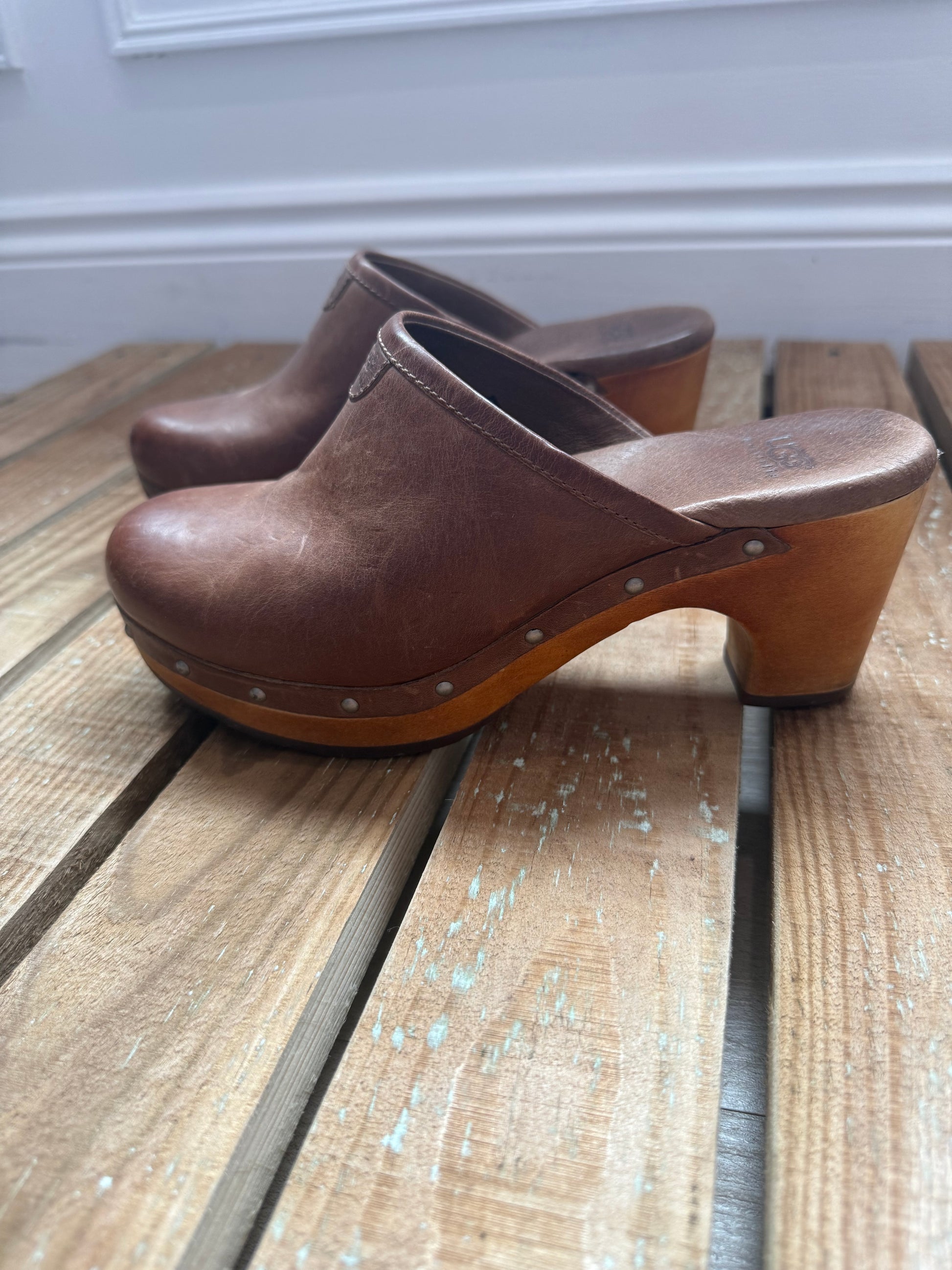 Vintage Y2K Ugg heeled mule/ clogs, shearling sheepskin lined shoes.