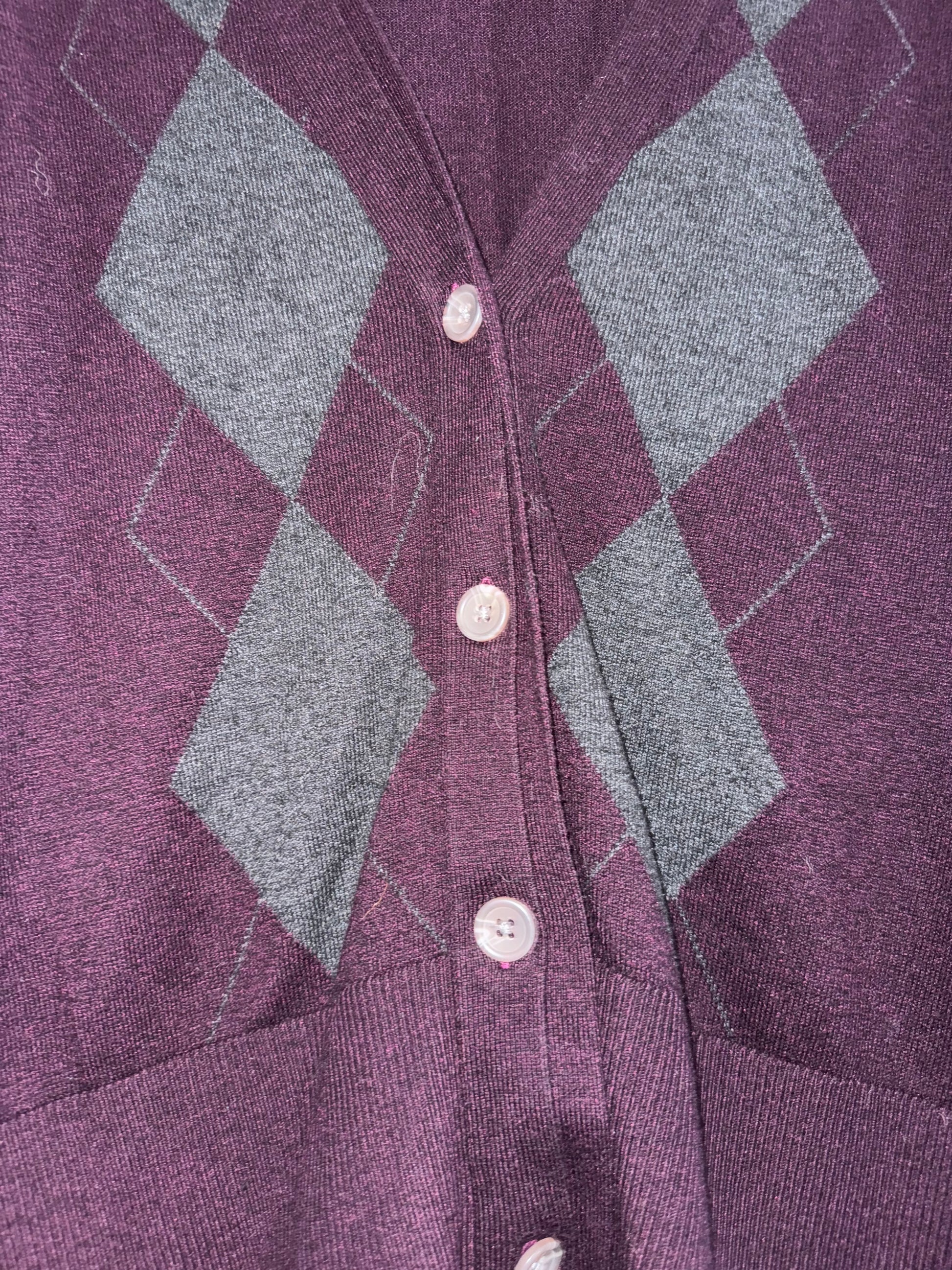 Banana Republic argyle print button up cardigan. Plum. Size Medium.