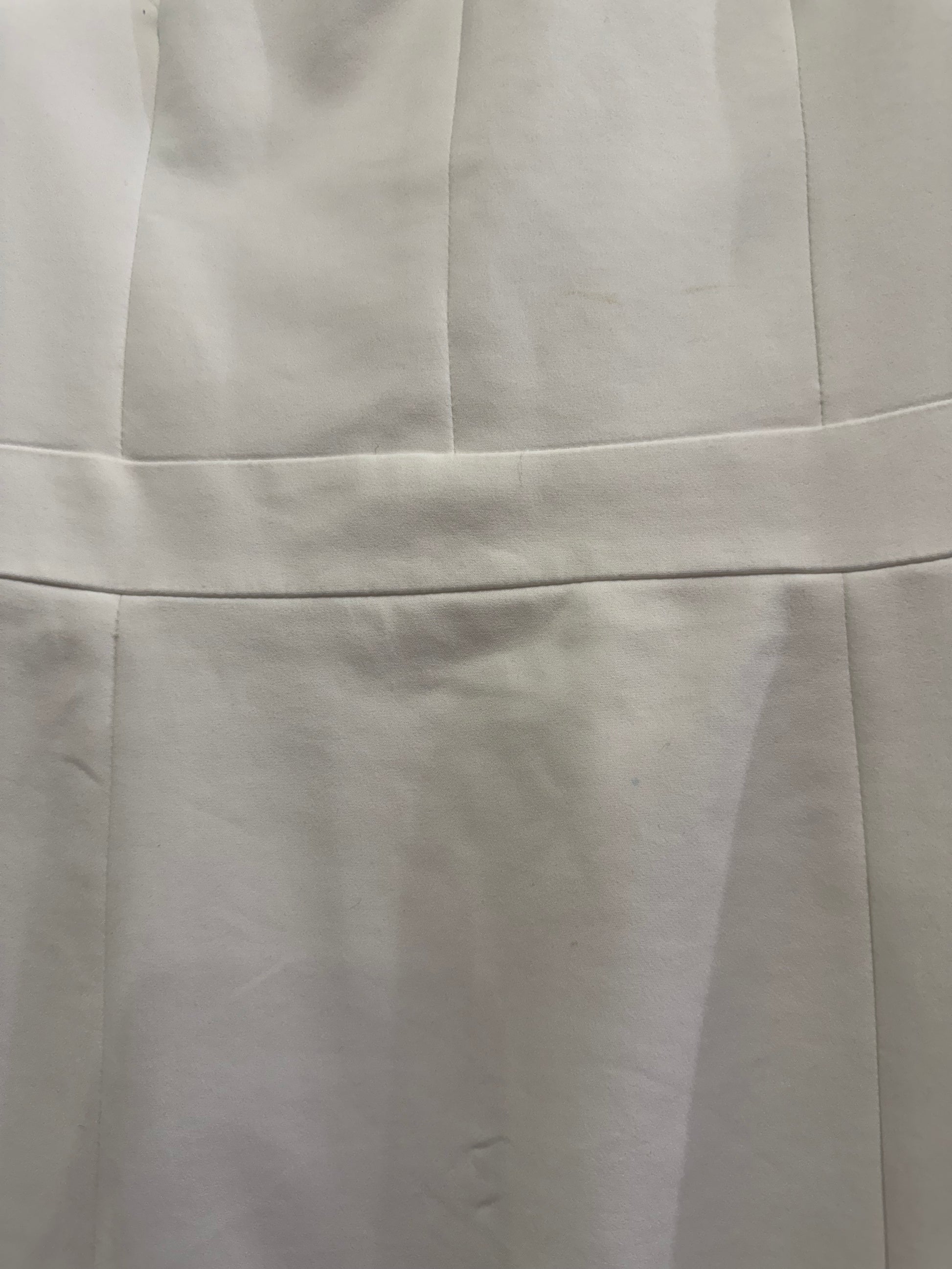 Labelled a UK10. Measures 32” bust, 28” waist 36” hips so fits up to a modern day UK size 8-10