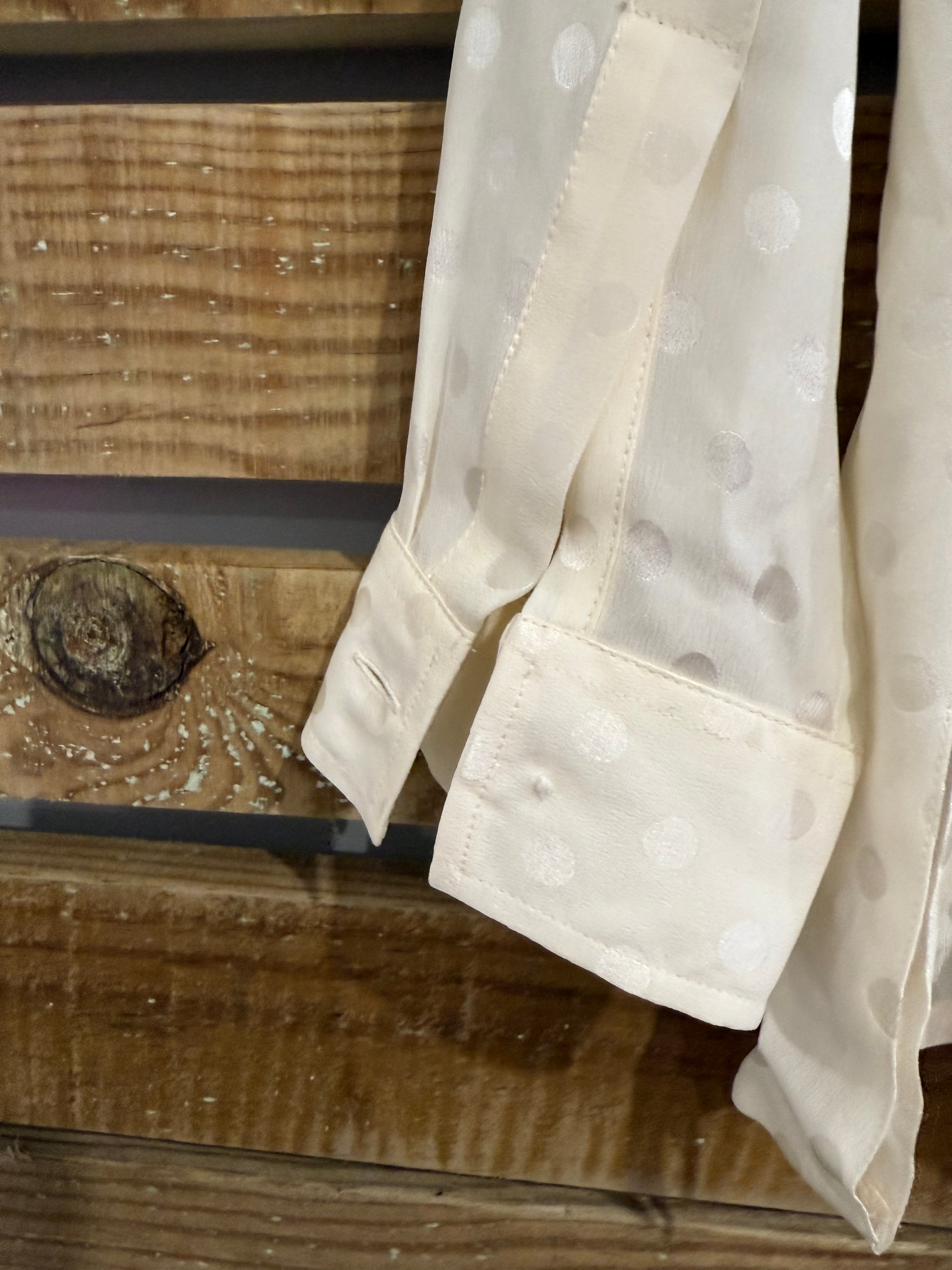 Vintage 80s Aquascutum pussy bow polka dot blouse.