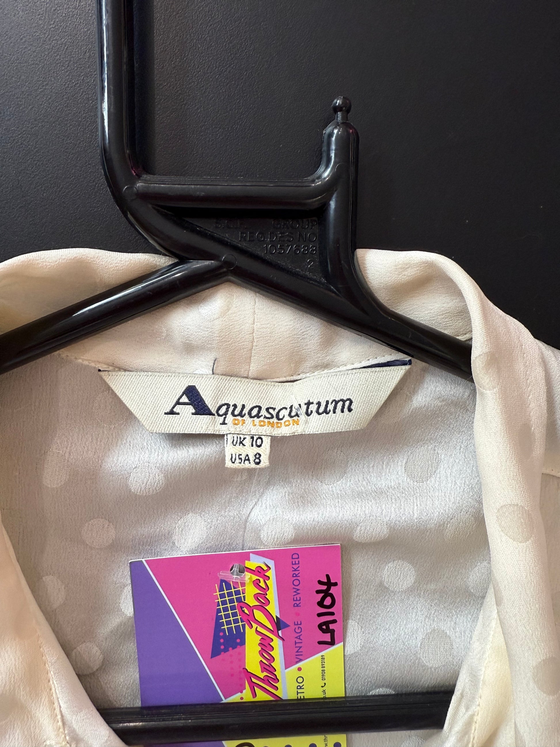 Vintage 80s Aquascutum pussy bow polka dot blouse. Size UK10.