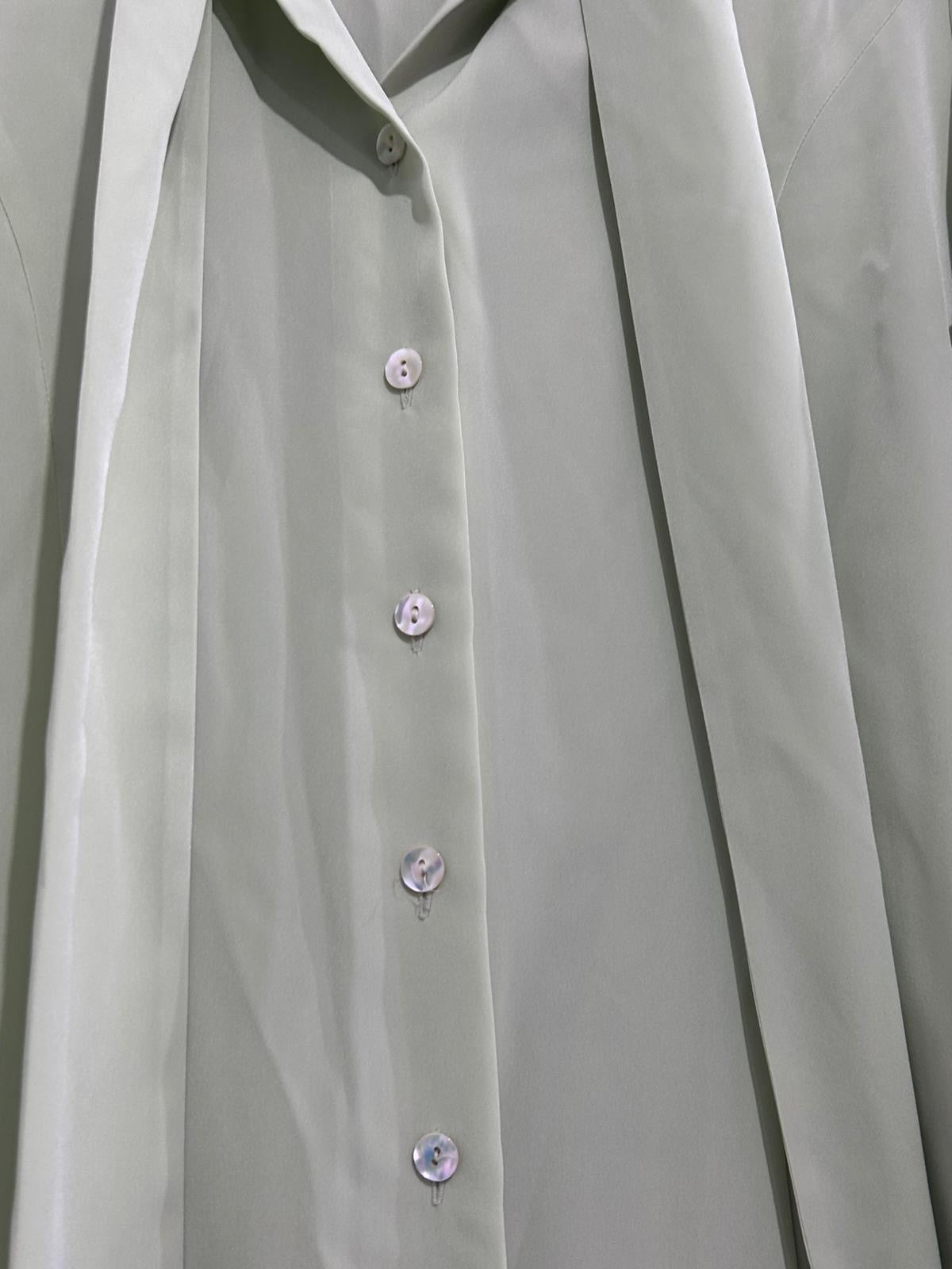 Vintage 80s Aquascutum pussy bow pale green blouse. Size UK10.