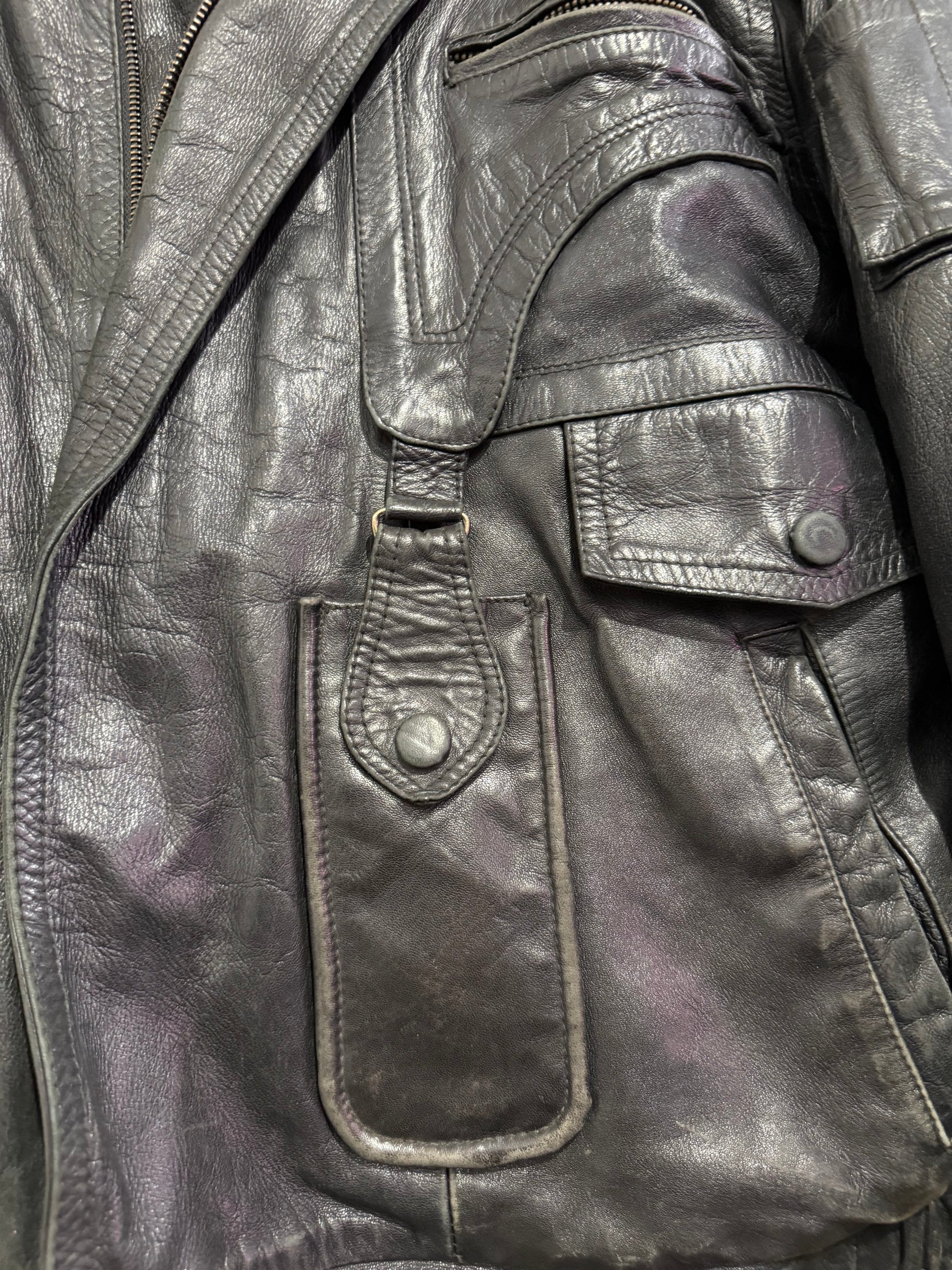 Vintage 80s leather biker bomber jacket.