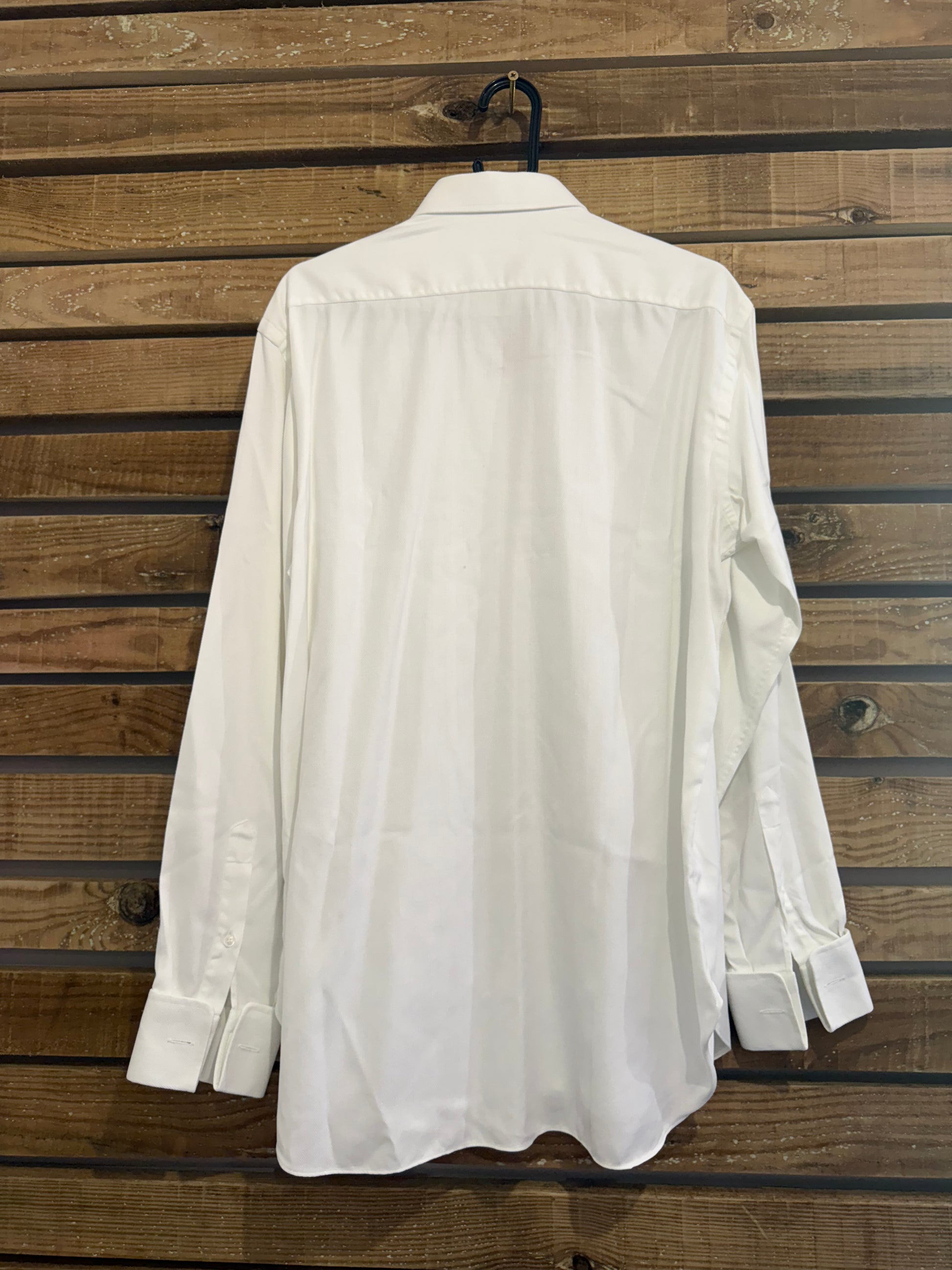 Vintage 90s Brioni White Herringbone Dress Shirt - Made in Italy, French Cuffs, Luxury Menswear. Size Large.