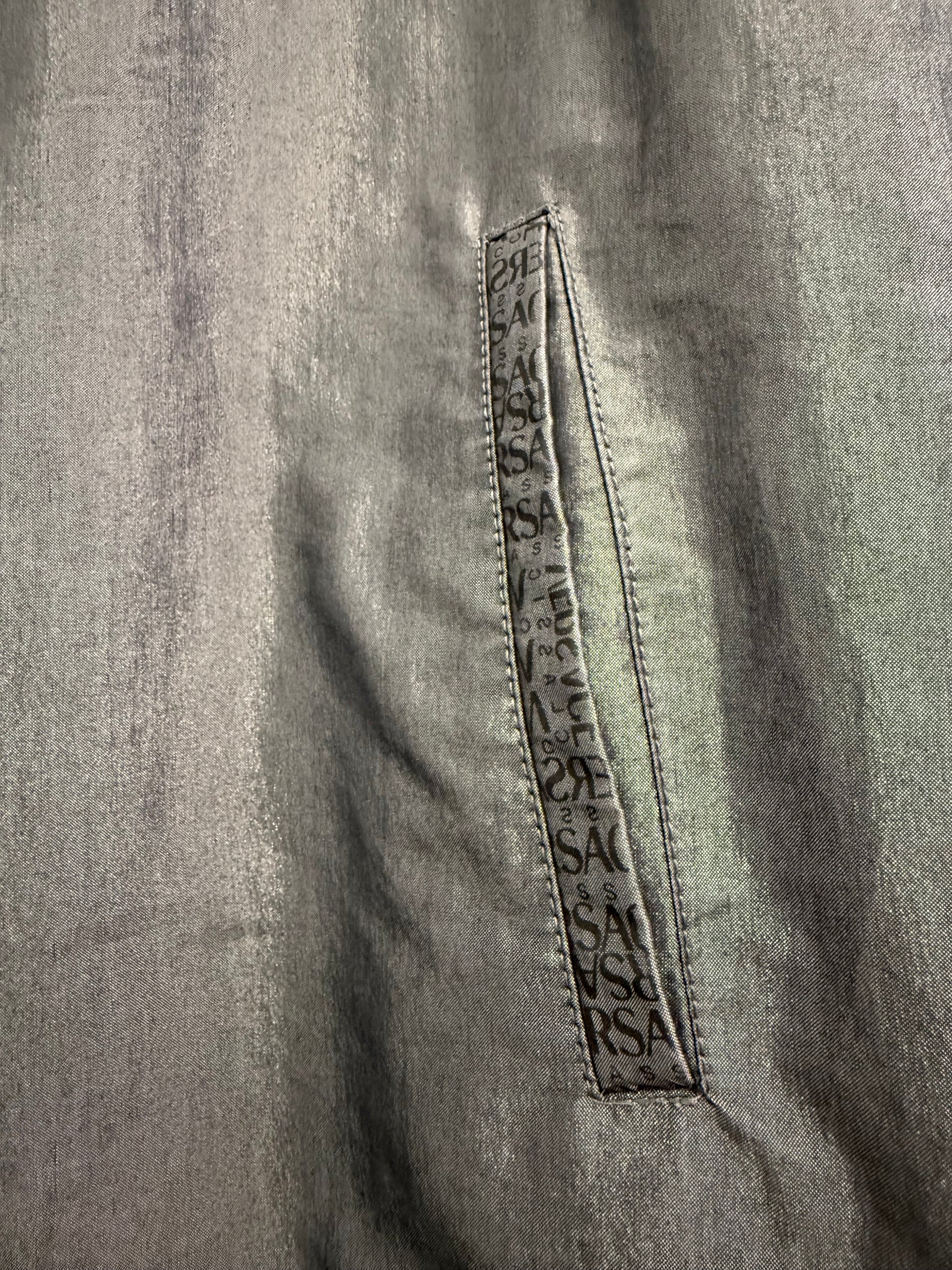 Vintage 90s RARE Versace Classic silver metallic harrington jacket. Size Large.
