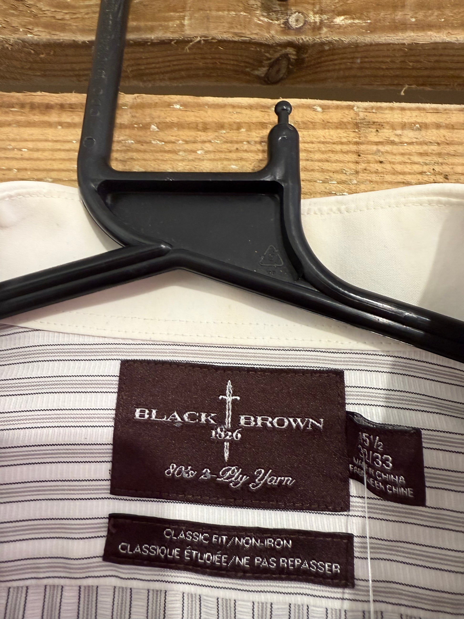 Vintage 80s Black Brown striped button up shirt. Size Large