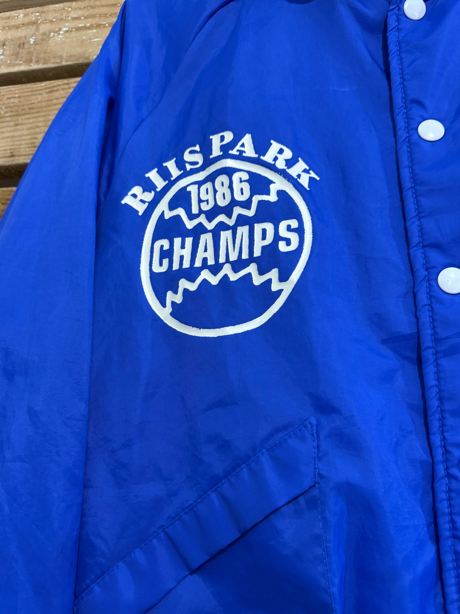 Vintage 80s satin bomber jacket. USA. Size Medium. Aristo jac. ‘Chicago Blues’ Varsity