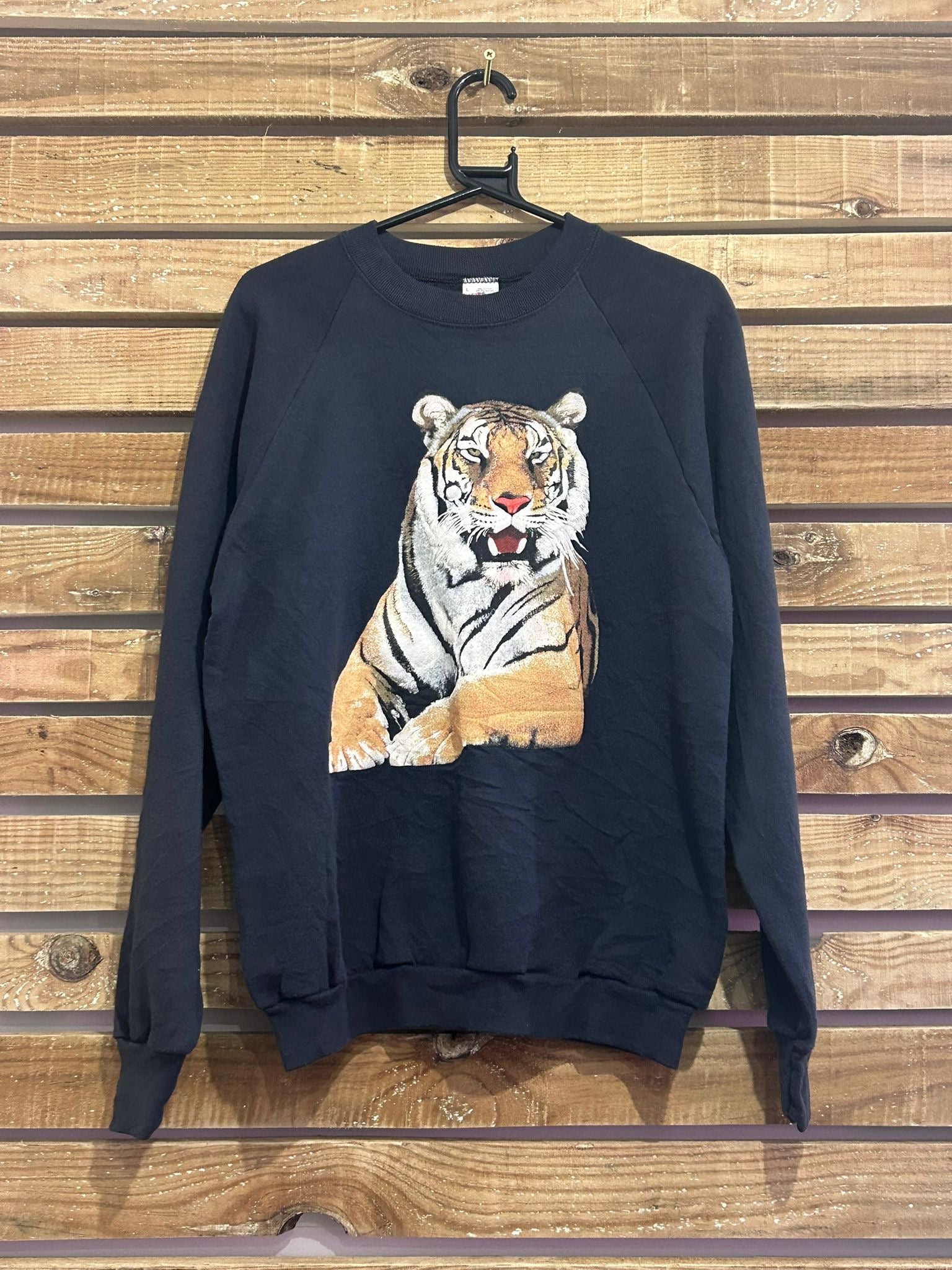 Vintage 90s American tiger animal motif sweater/ sweatshirt. USA. Black. Size Large