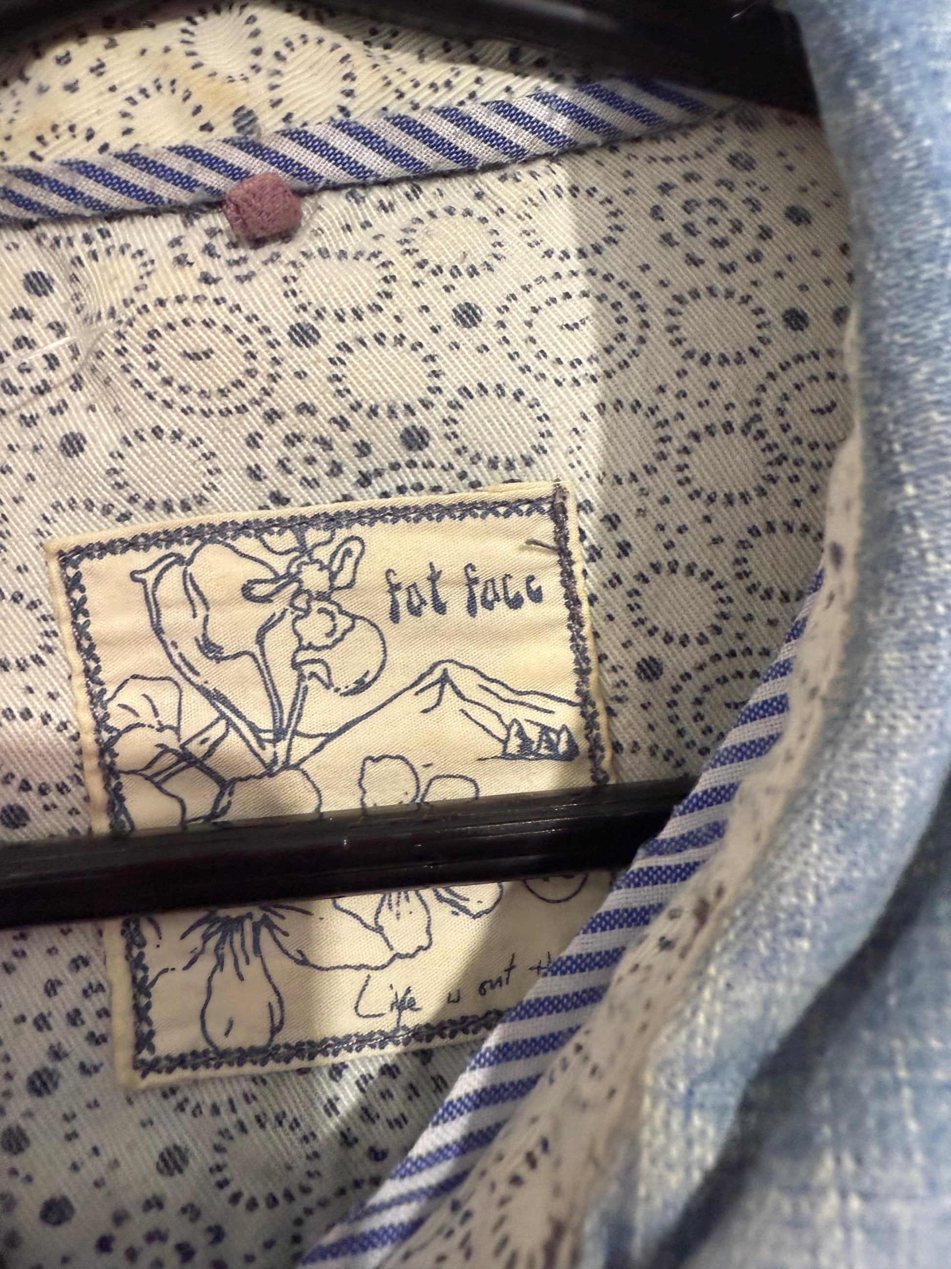 Measures: 48” Chest, so fits like a Large for a fitted look. But looks great oversized too
