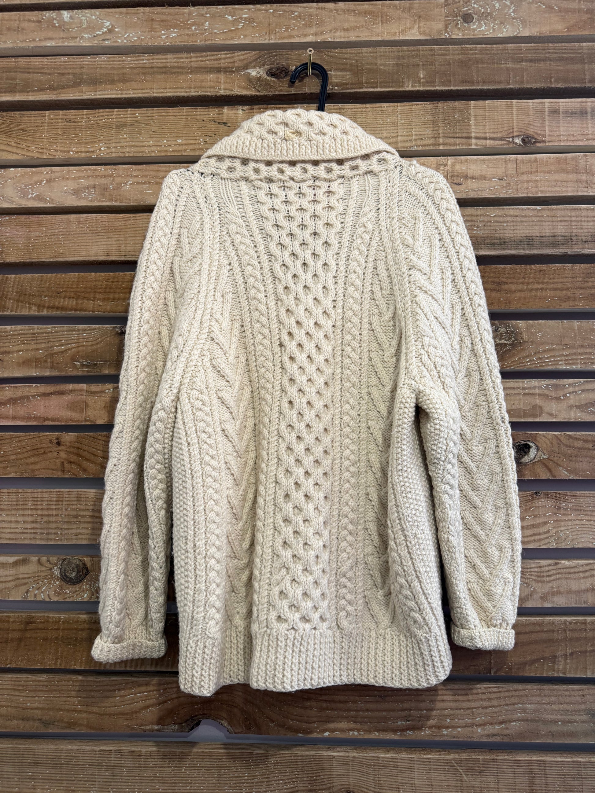 Vintage 70s Aran Knit Cream Cable Knit Cardigan. Size Large
