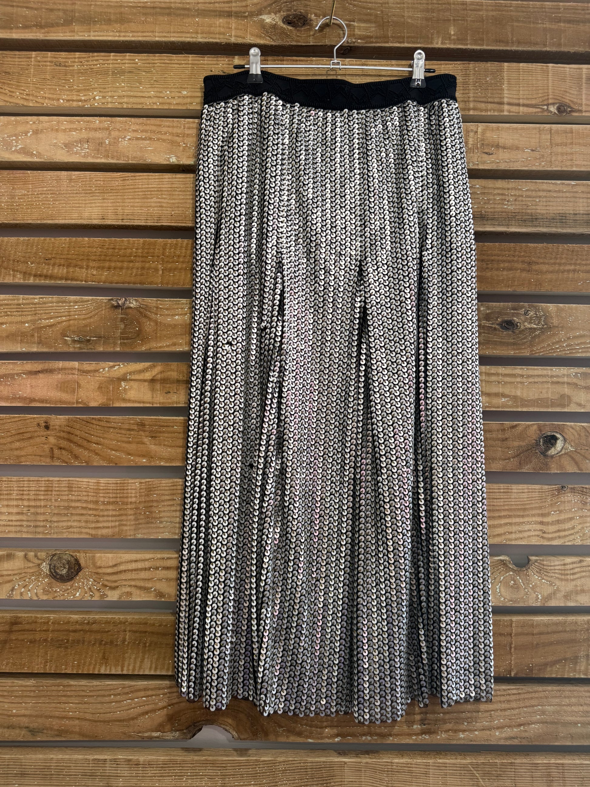 Maje Sequin skirt. Christmas/ party. black & silver. Size 3. 28-30” waist. UK 8-10.