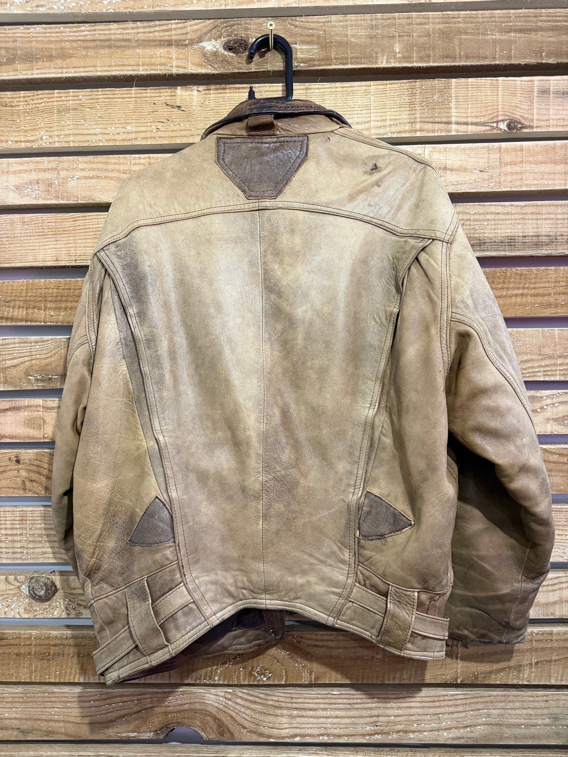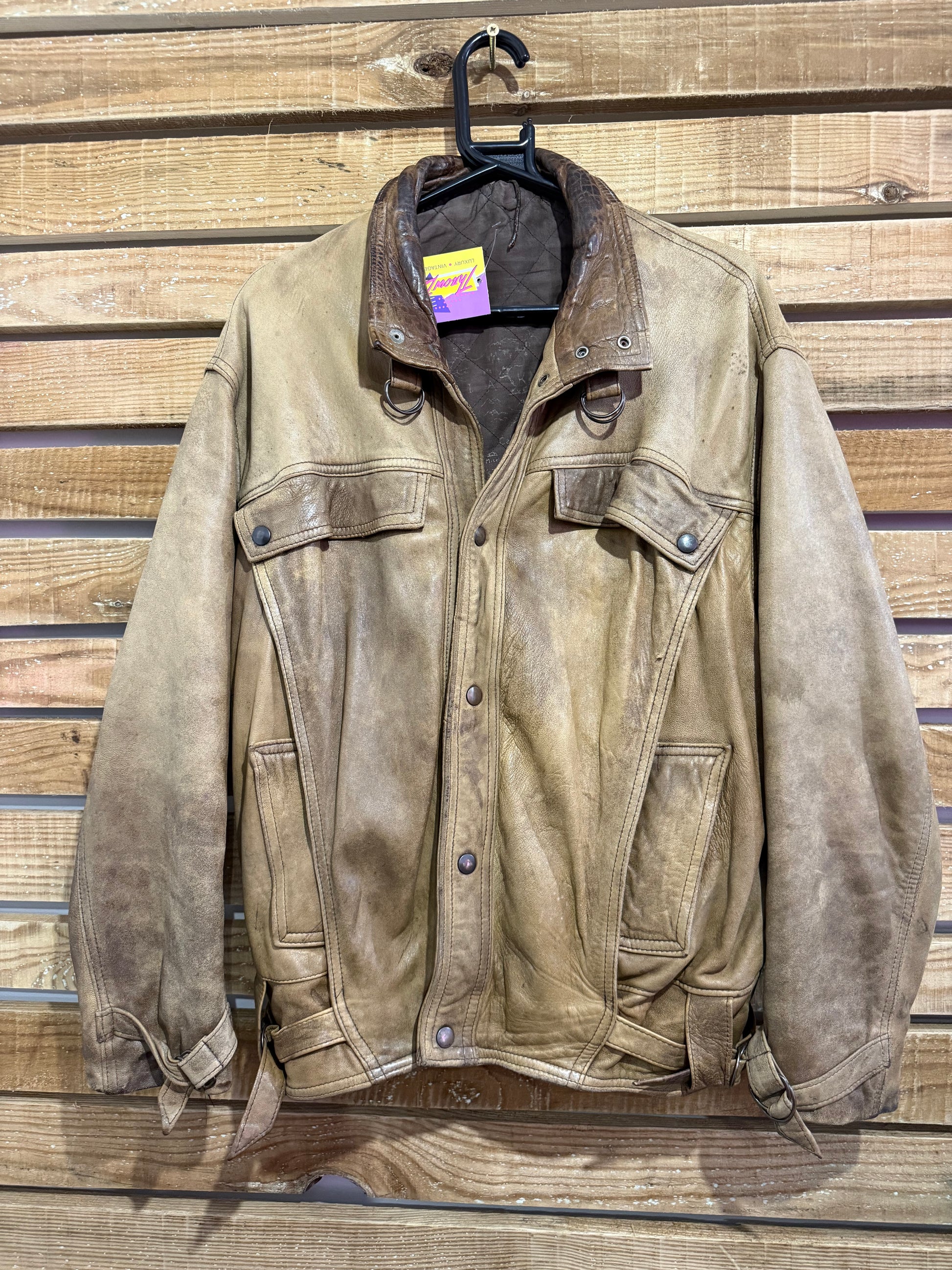 Vintage 90s leather biker bomber/ aviator jacket. Brown. Size XL. Grunge.