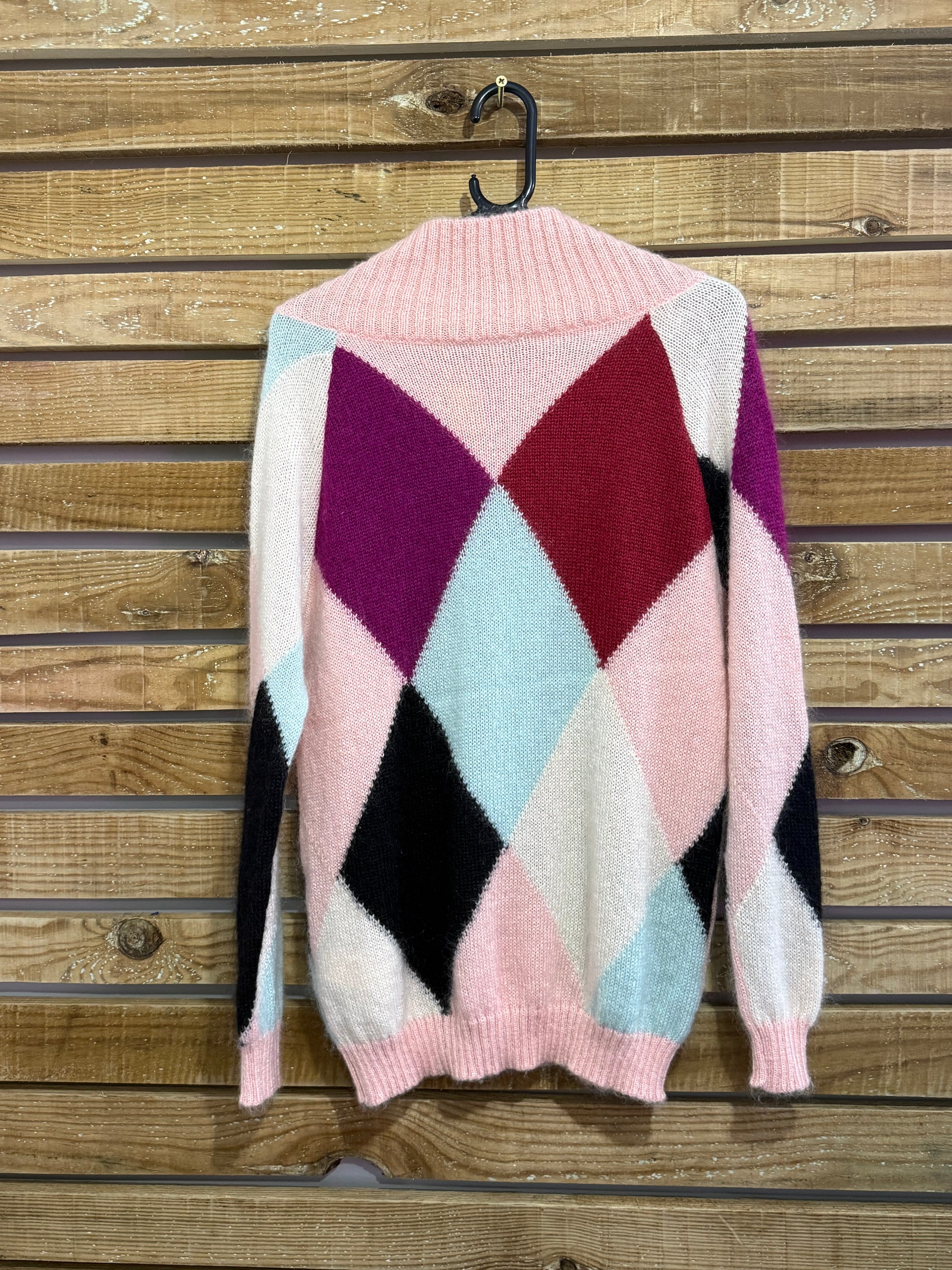 MSGM argyle mohair & wool pattern jumper. Pink. Size Small.