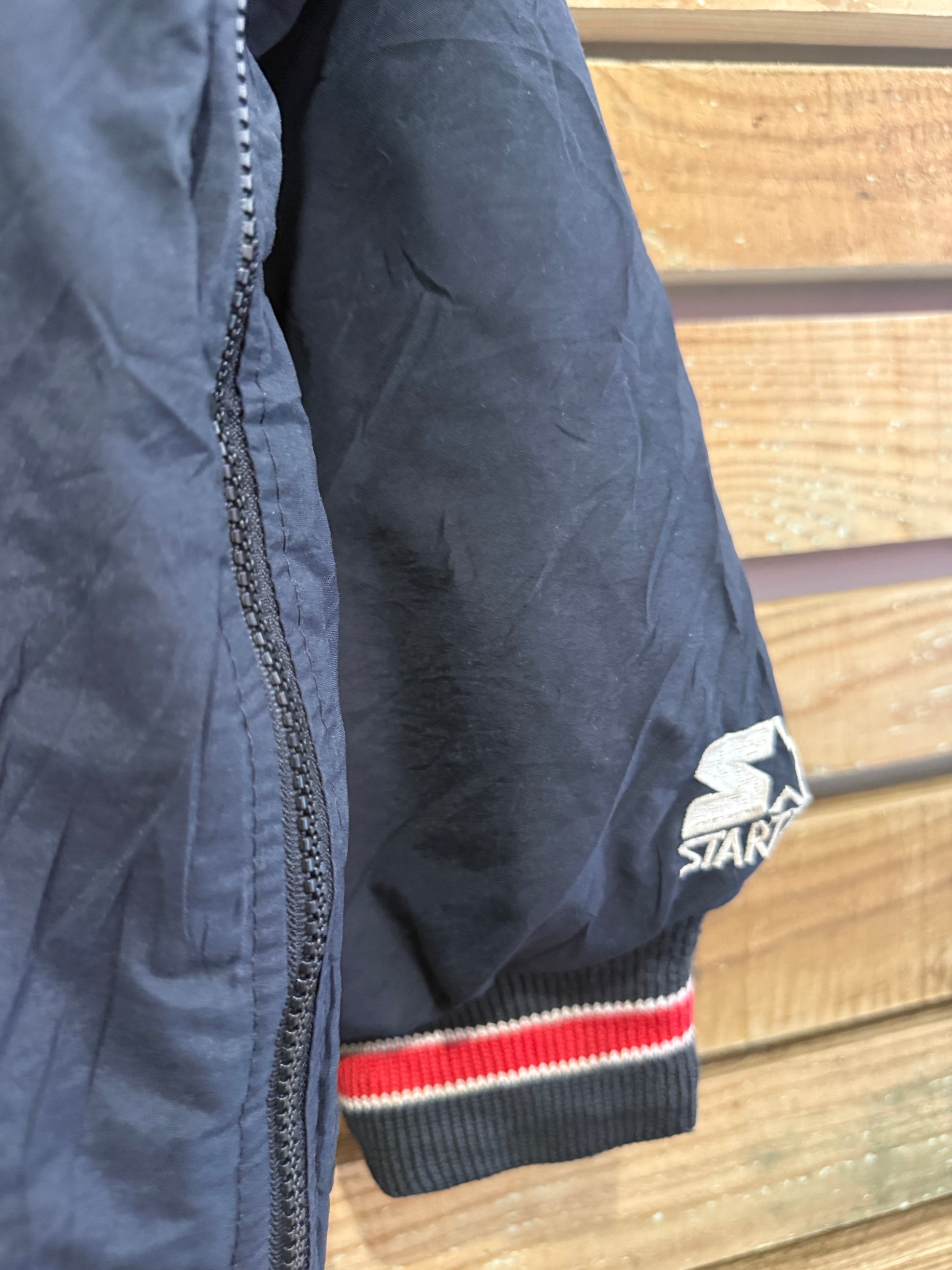 Has some minor discolouration to the starter logo on the sleeve & the zip is broken, however it does fasten with the poppers, is an easy fix, if you want to replace.