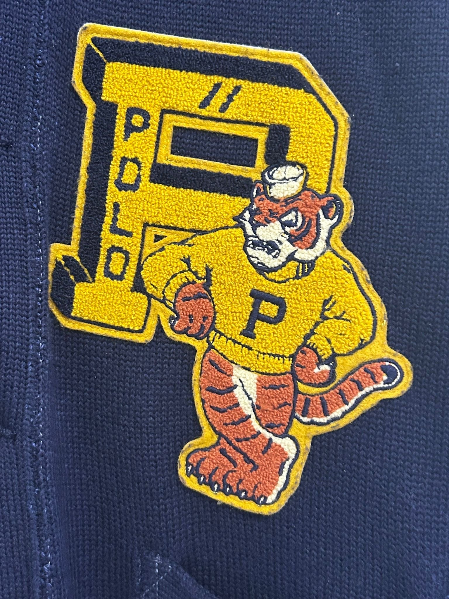 Vintage 90s Ralph Lauren Varsity knitted cardigan. Blue. Size Small.