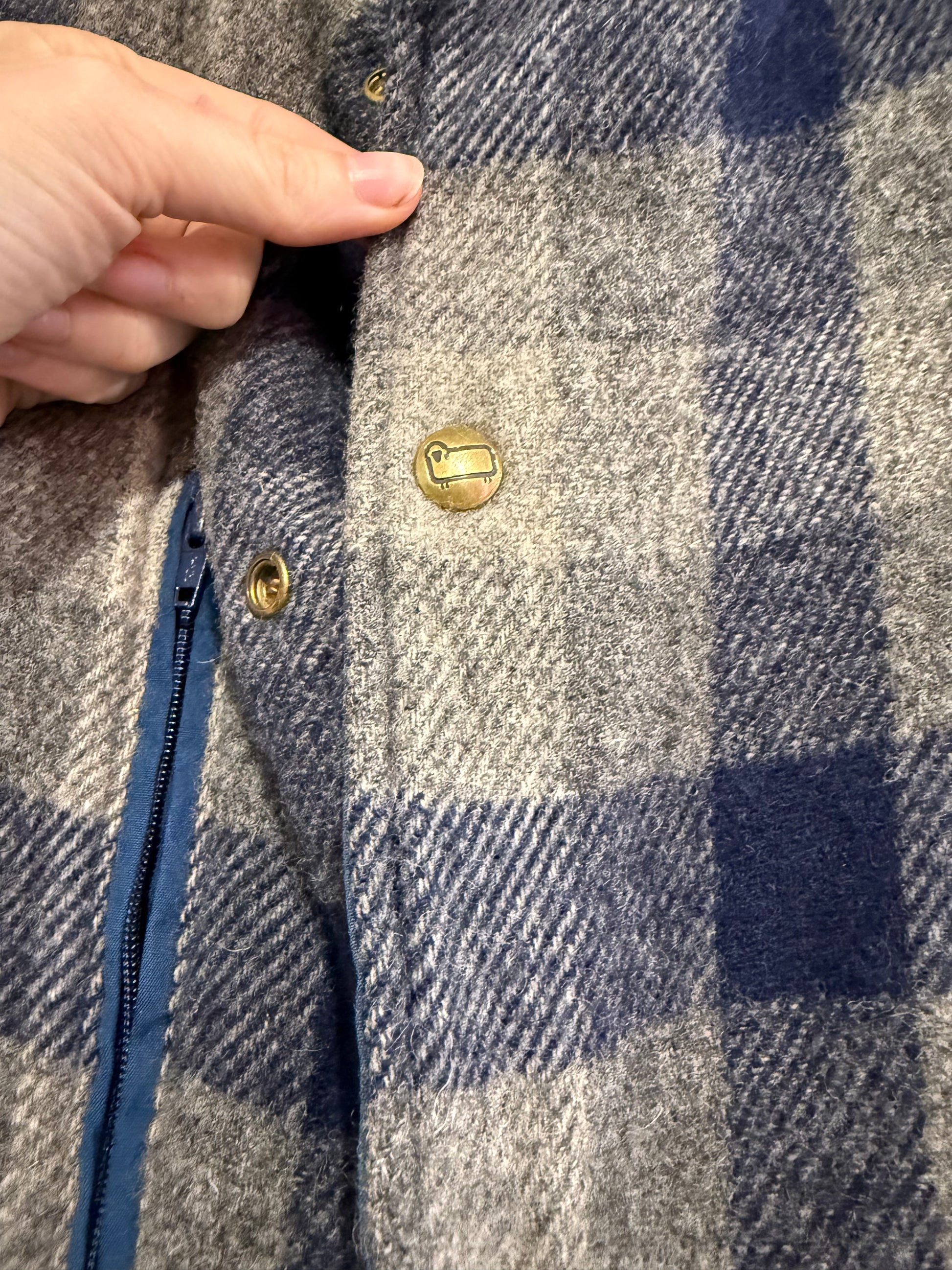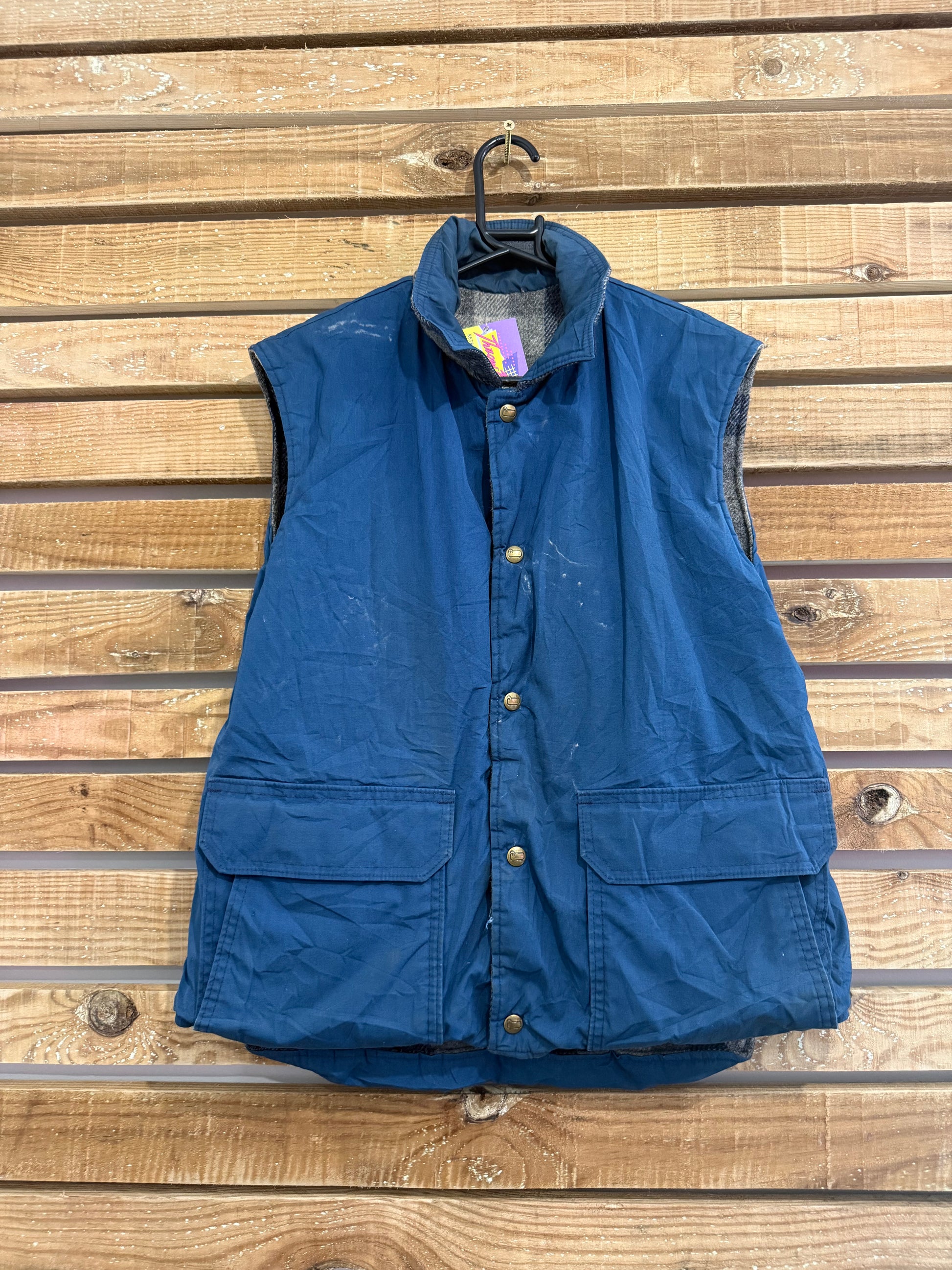 Vintage 80s Woolrich reversible checked wool/ waterproof gilet/ sleeveless jacket. Size Large. Workwear.