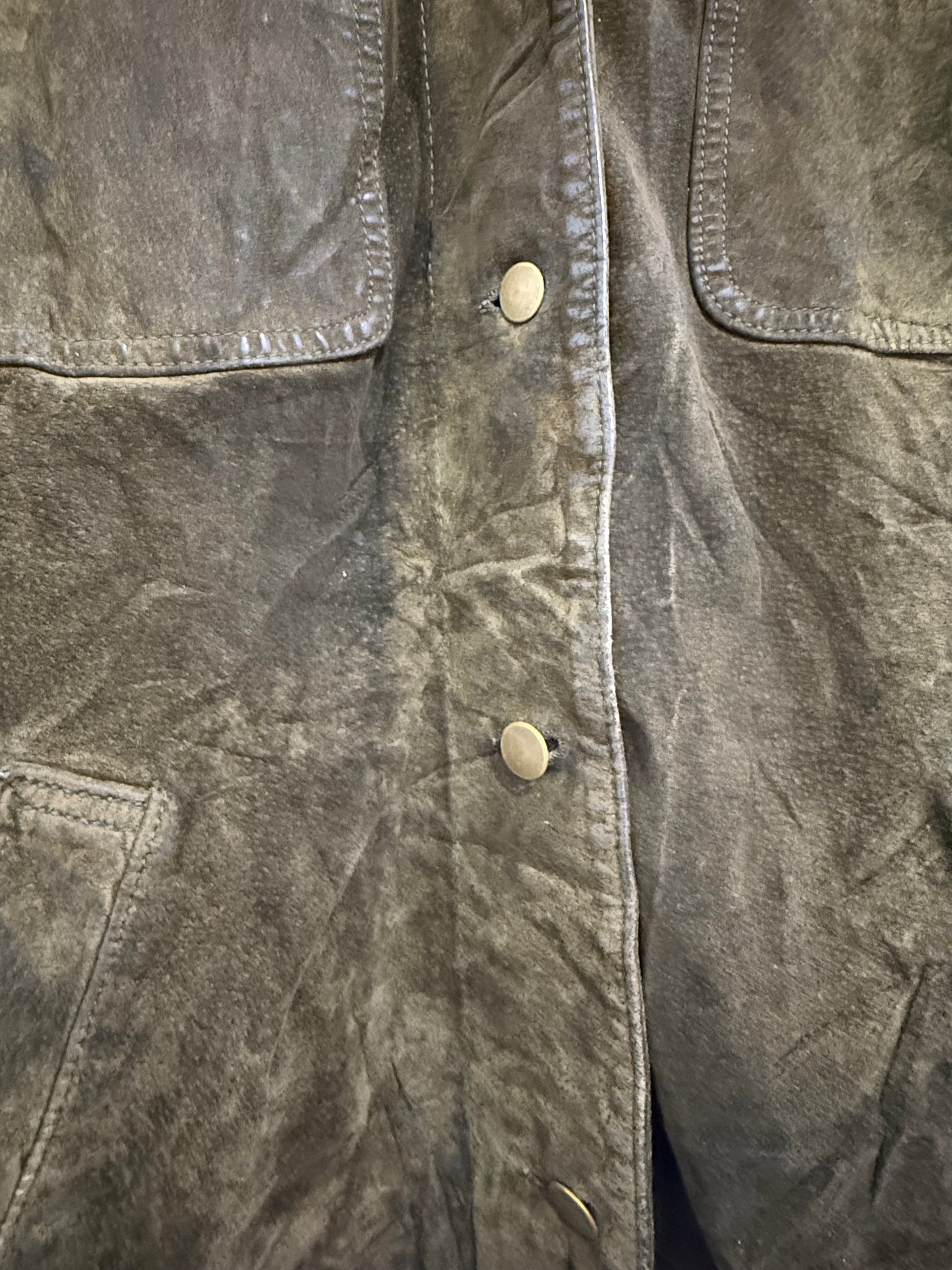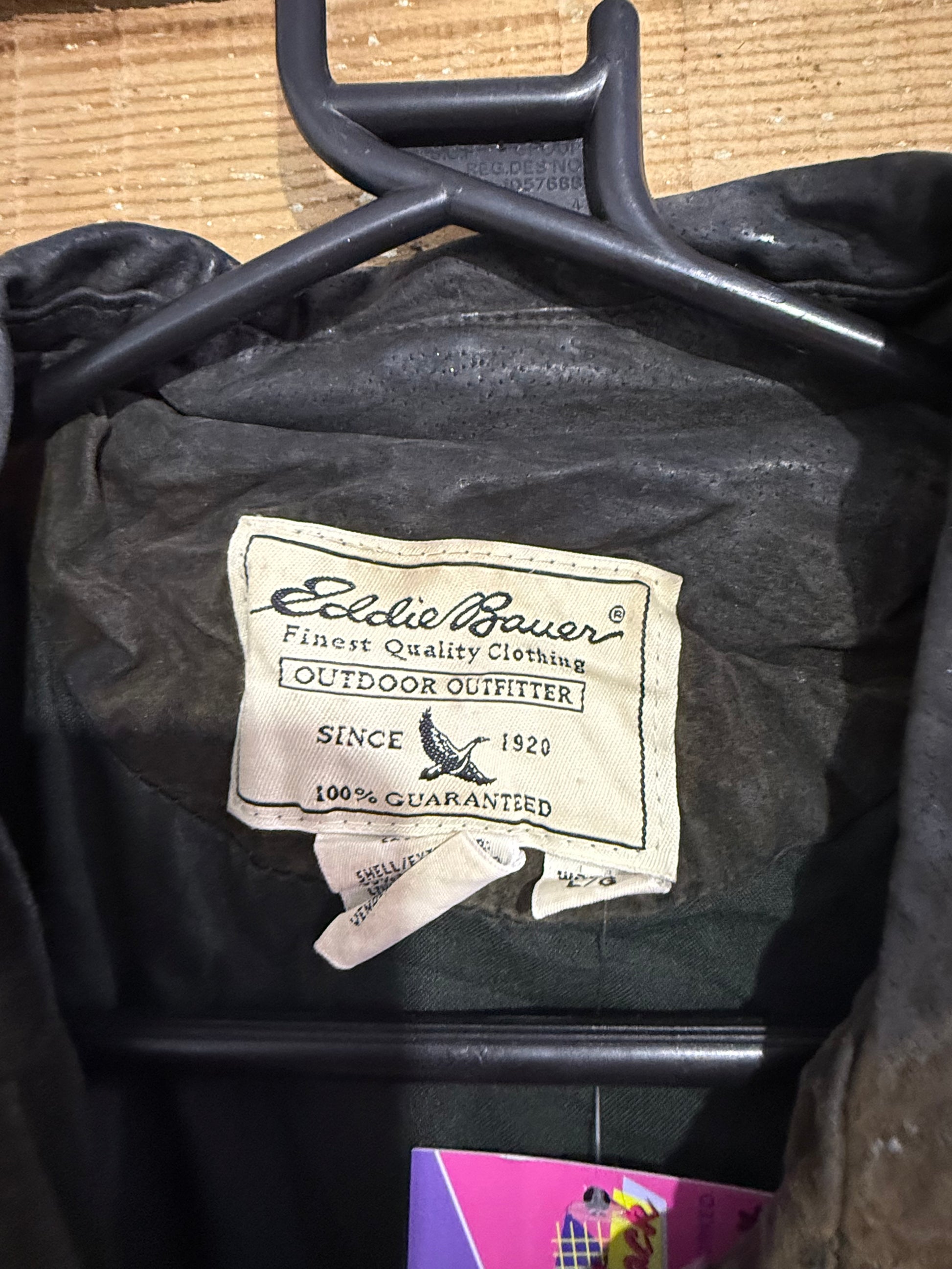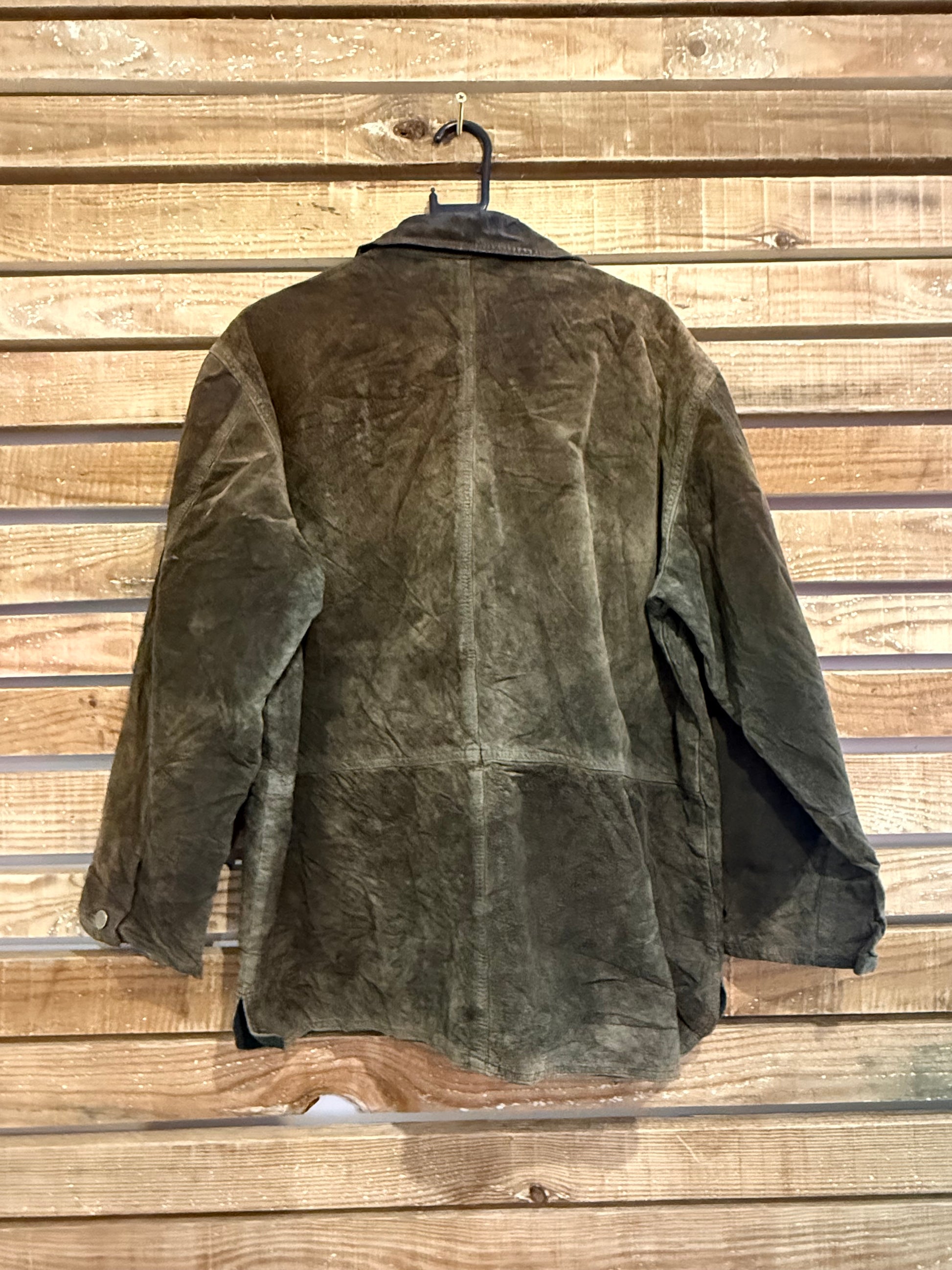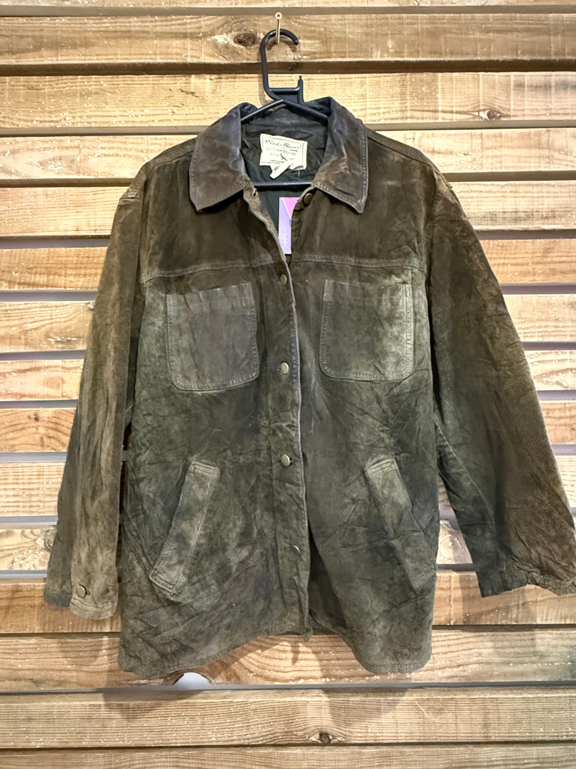 Vintage 90s Eddie Bauer suede leather jacket. Khaki Green. Size Large