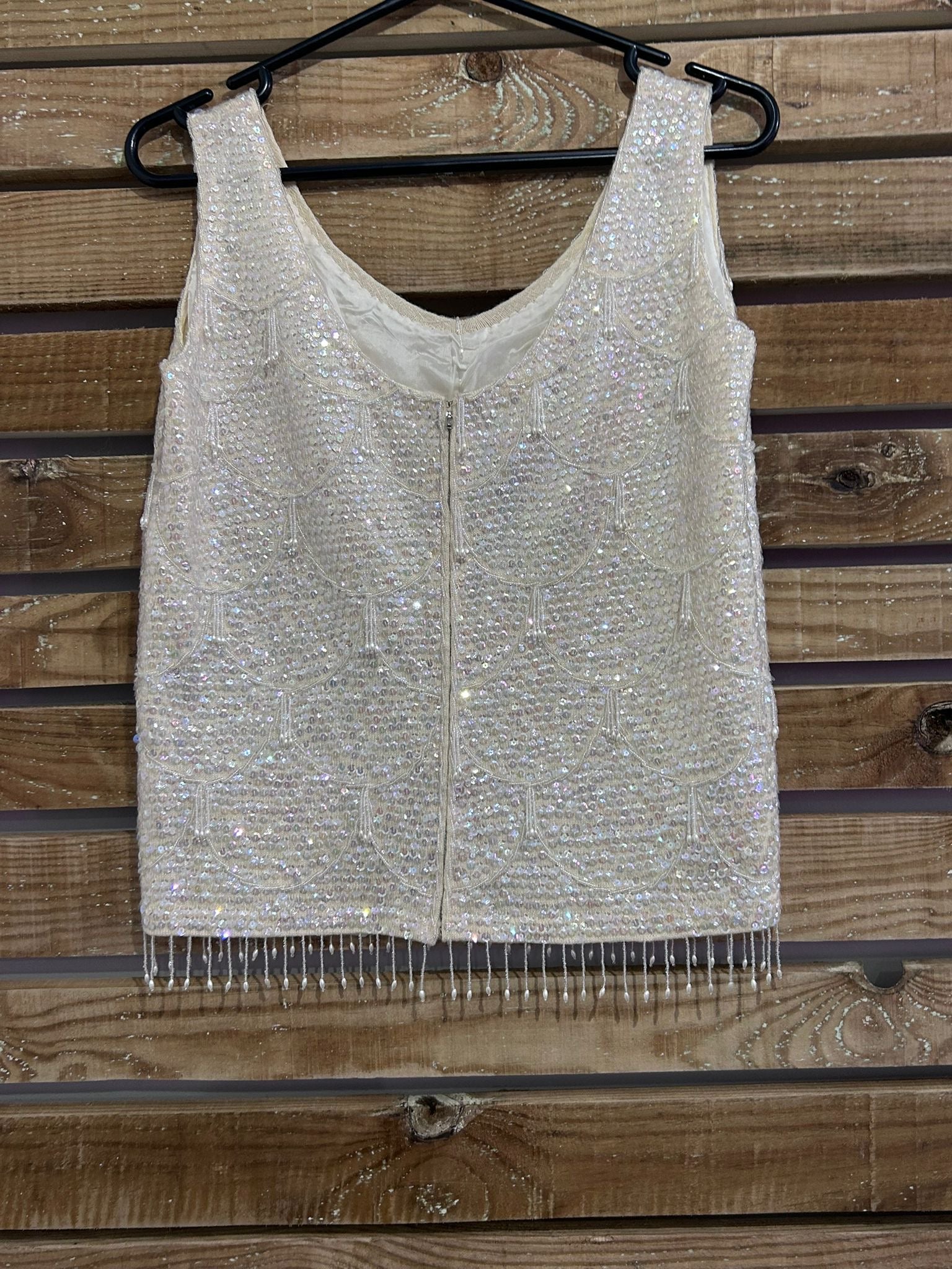 Vintage 60s beaded sleeveless top. Uk12. Christmas/ party/ winter