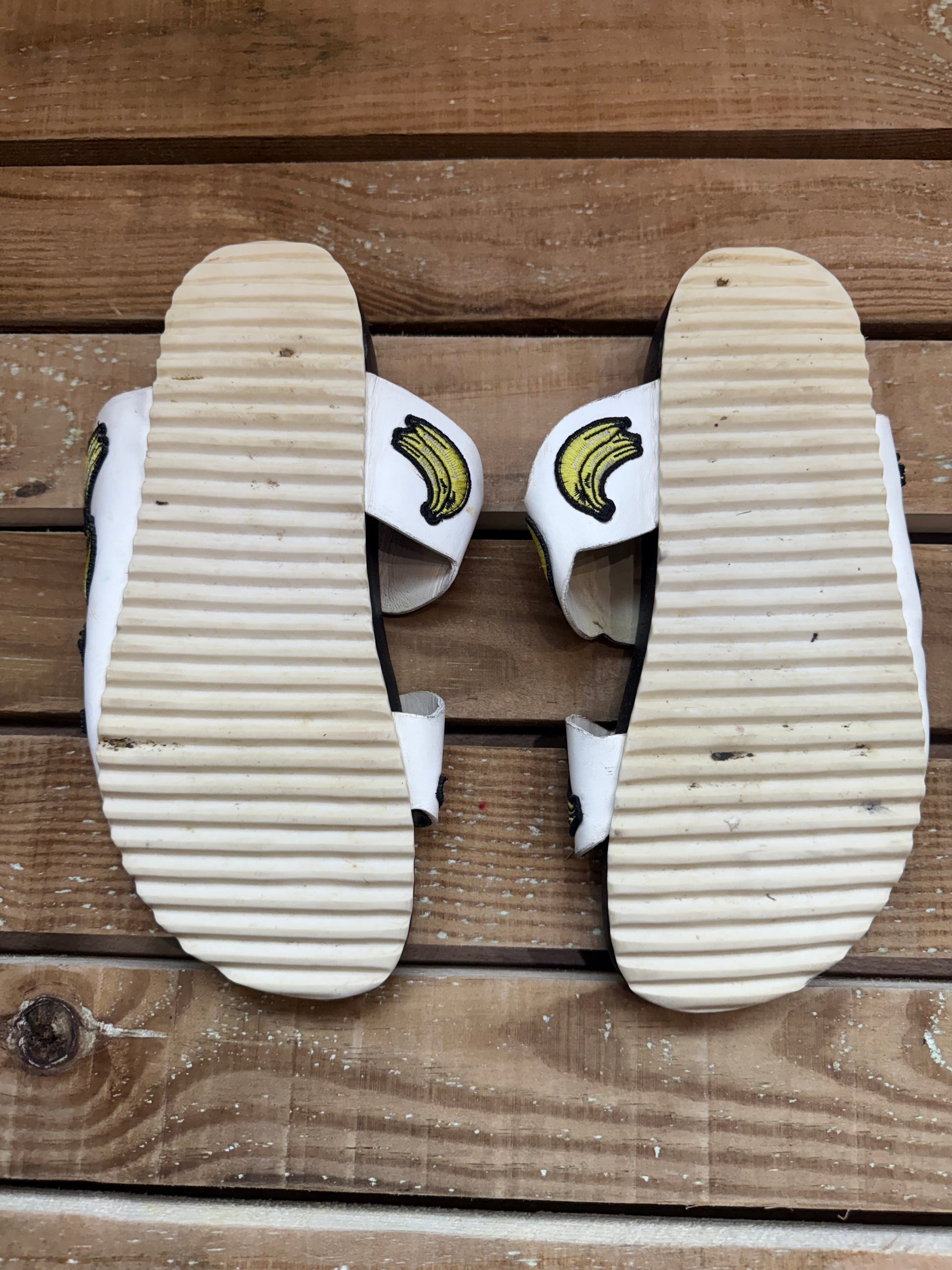 Sophia Webster banana print slides/ sandals.