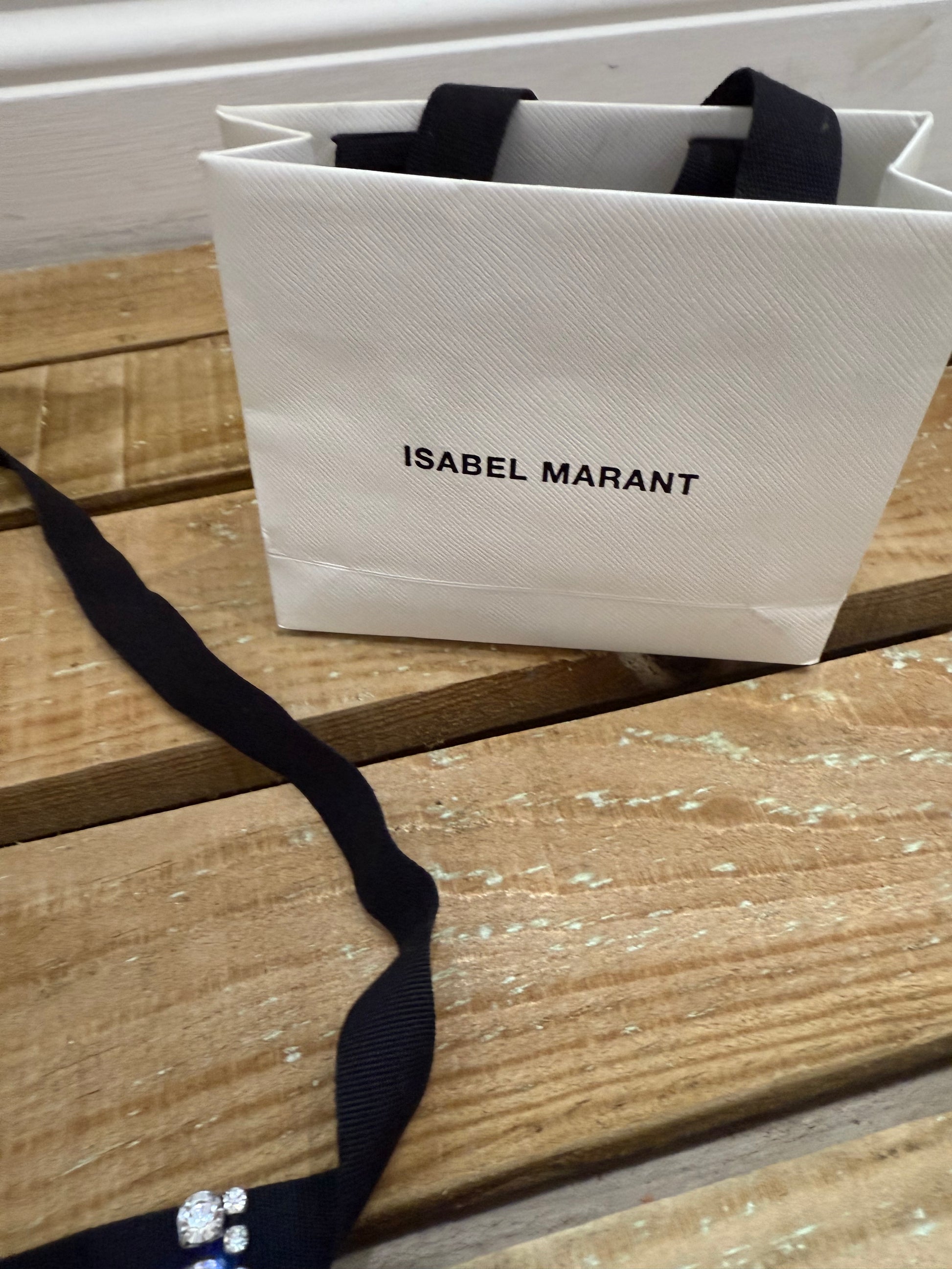 Isabel Marant crystal-embellished fringe choker necklace with bag.