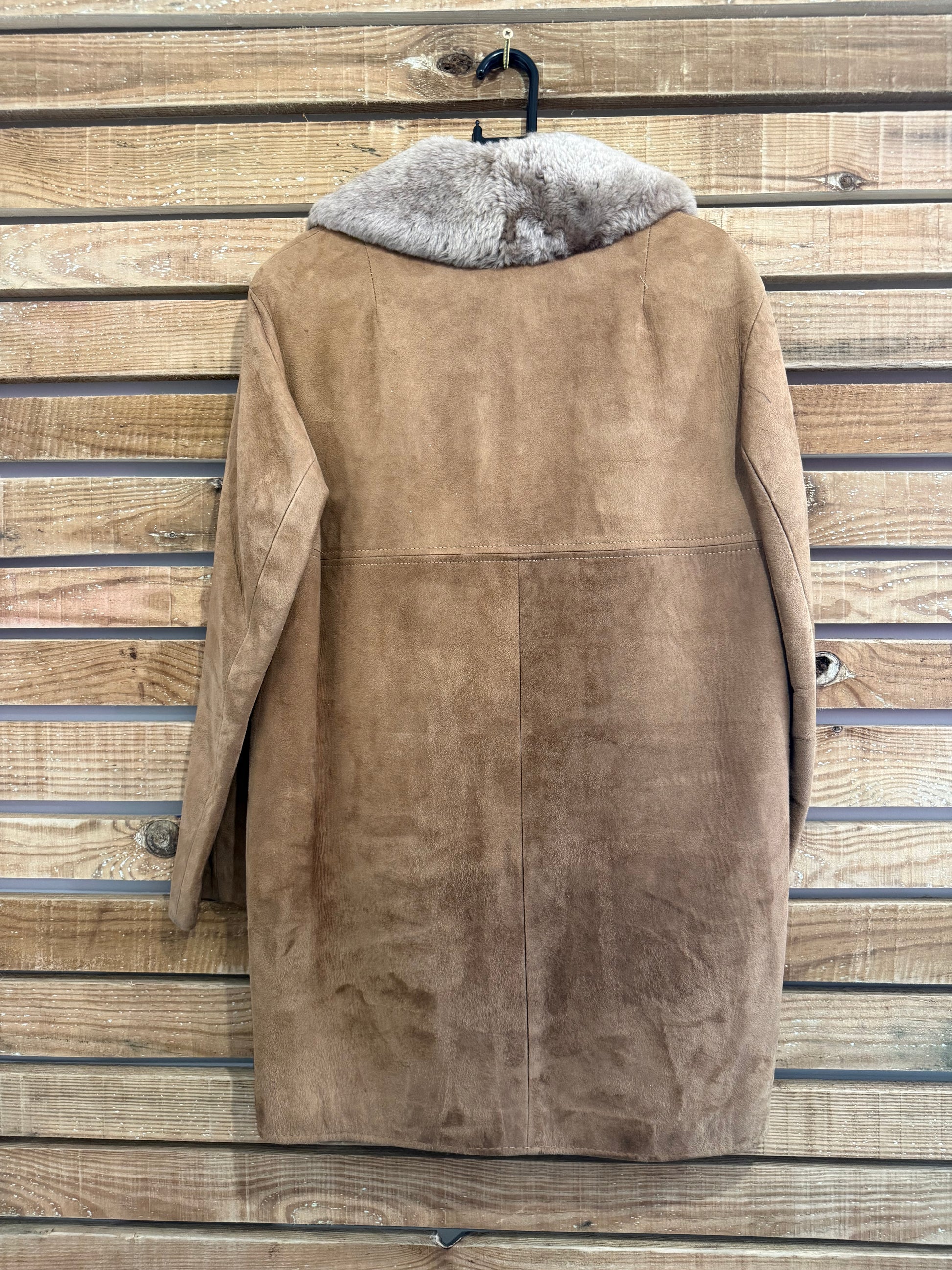 Really lovely used condition, the sheepskin has a nice natural patina to it. No major flaws or signs of wear. You can also unzip the shearling lining, super high quality & well made.