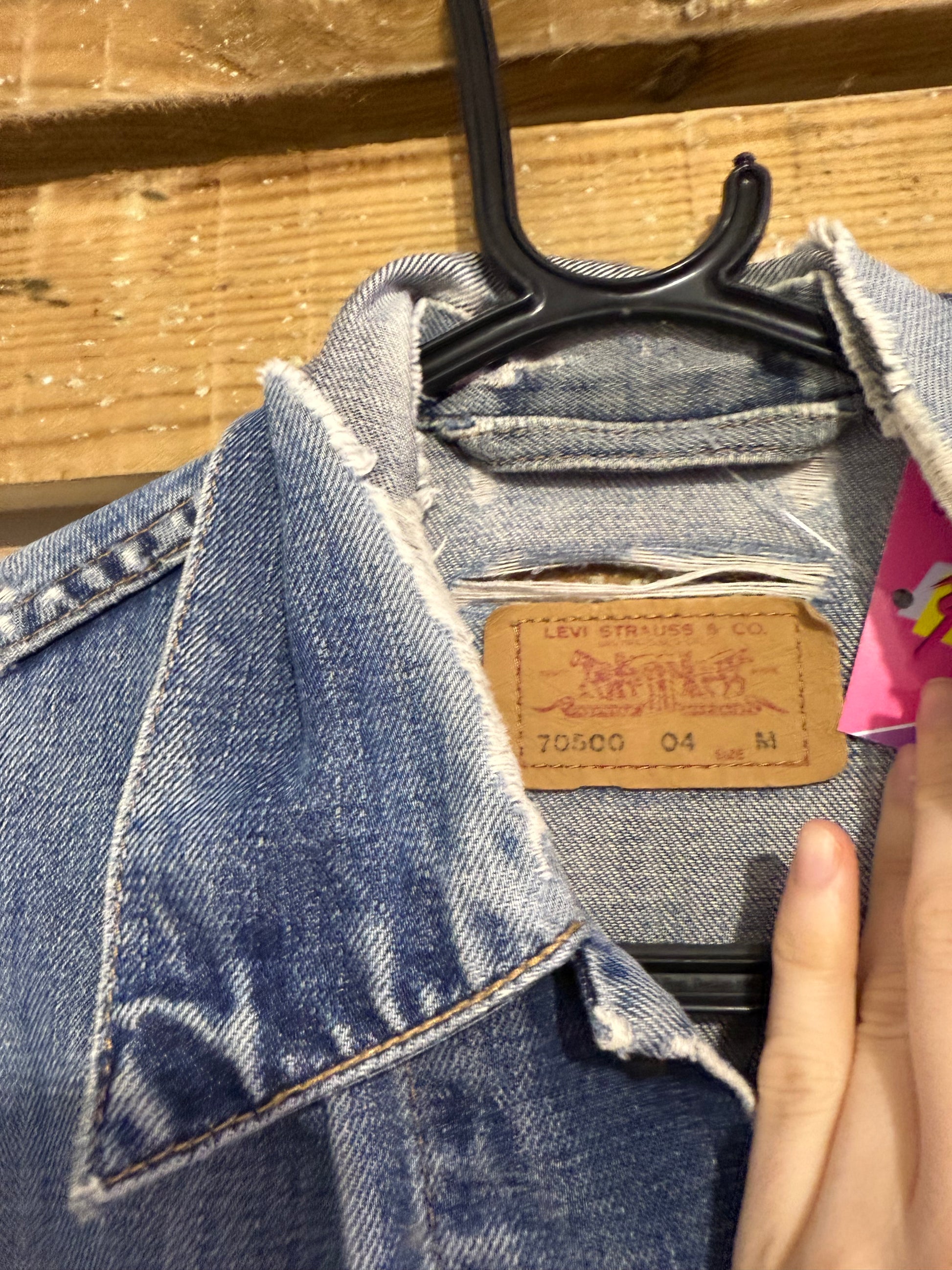 Vintage 90s Levi’s blue denim jacket. Size medium. Distressed/ grunge. Festival.