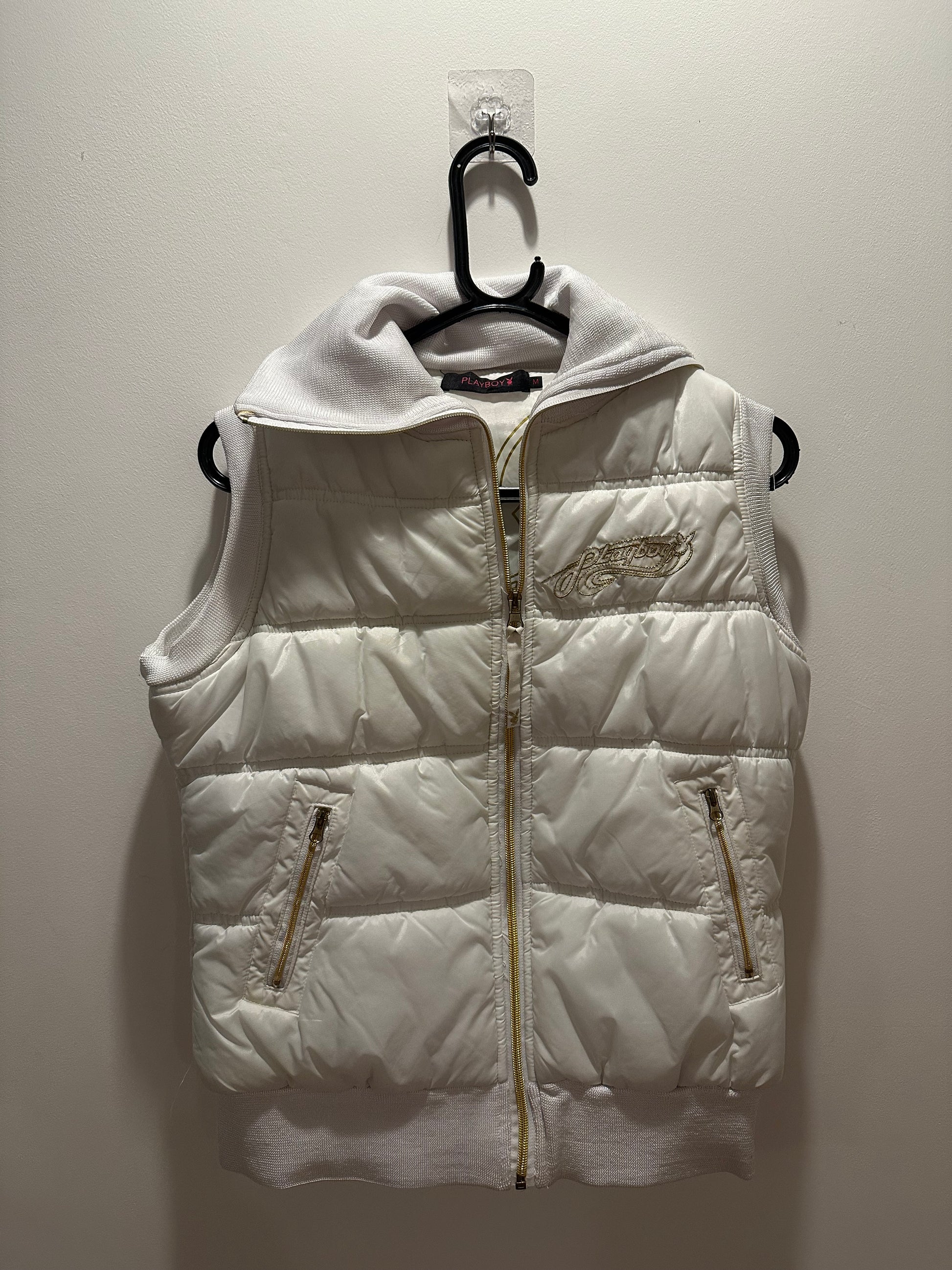 Vintage Y2K RARE Playboy Puffer Gilet. White. Size Medium